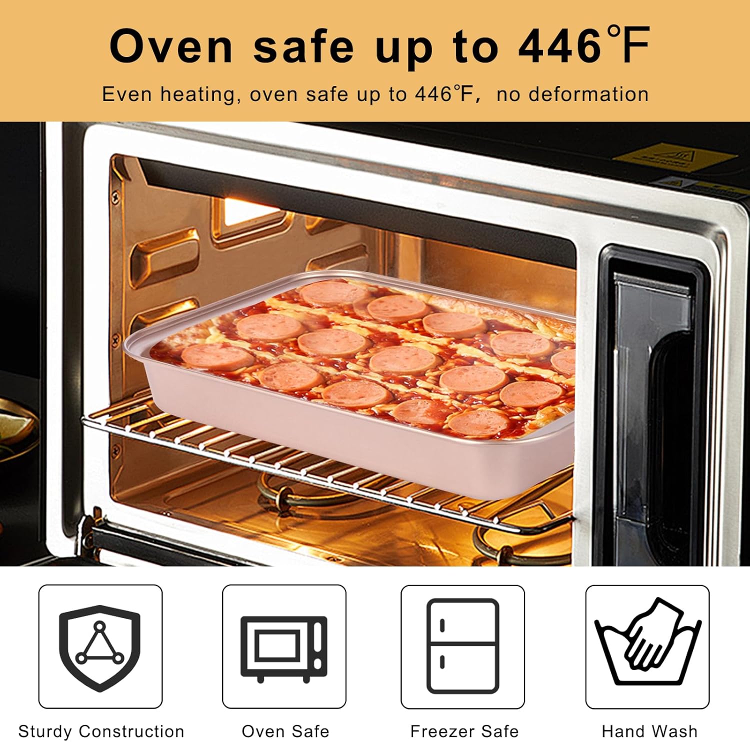 • Ideal For Festivals and Celebrations: This gold non-stick 13x9 baking pan that looks nice, is an indispensable addition to any festive meal, whether it's a turkey for Christmas, lasagne for Thanksgiving or a special cake for Easter