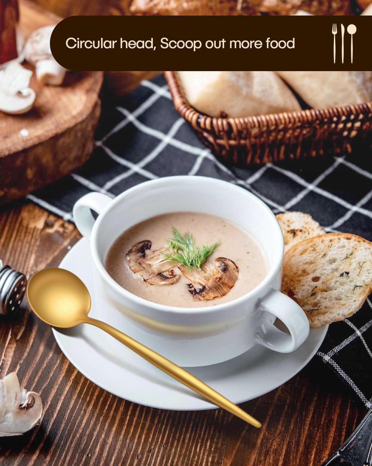 • SLEEK AND ELEGANT DESIGN: These gold utensils have classic profiles and clean lines, with a distinct design and luxury that can match well with any style you already have. A good set of tableware will make you feel happy and increase your appetite