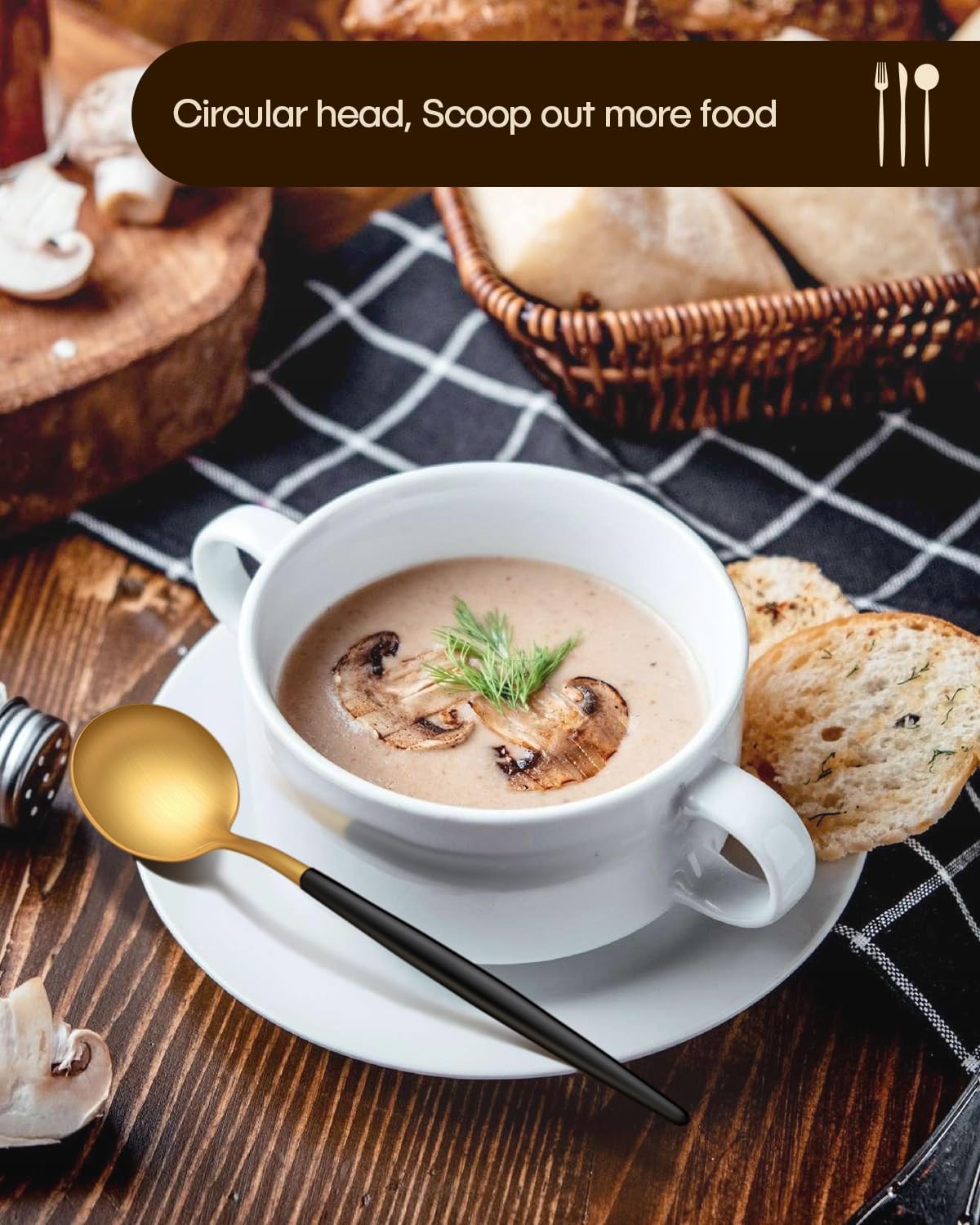 • ERGONOMIC HANDLE, PROPER WEIGHT: The elegant rounded curves make them timeless, with proper gauge thickness and weight to hold comfortably. A smooth edge ensures safety and no scratches, each gold silverware set is solid, well-balanced, and comfortable