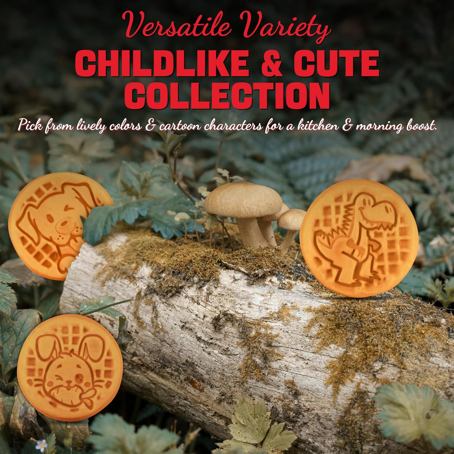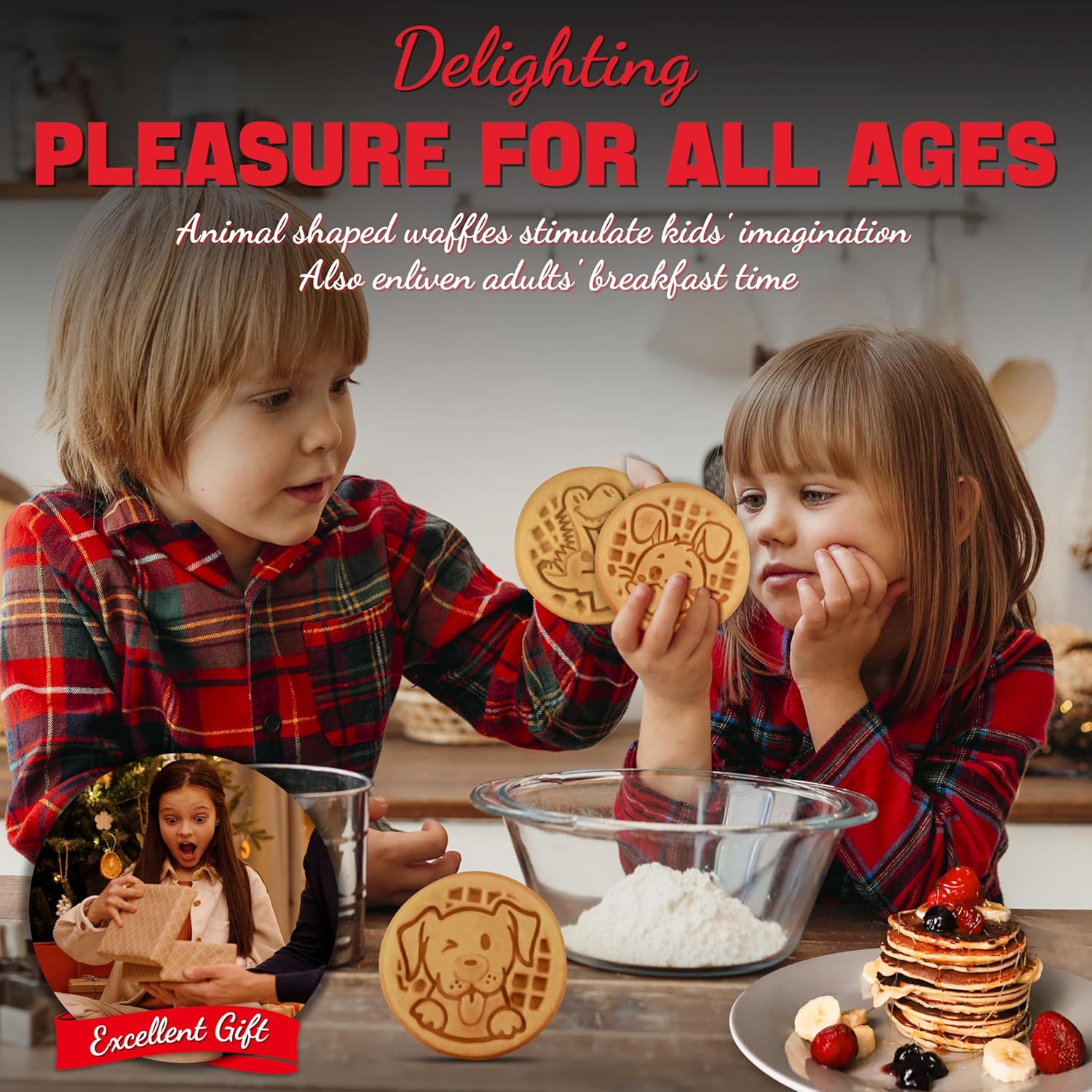 • [Versatile Pattern Options]: The Fun waffle maker, equipped with 8 interchangeable 4.5'' plates, transforms into a mini dino, rabbit, puppy, pancake, and heart-shaped waffle maker, along with producing traditional waffles.