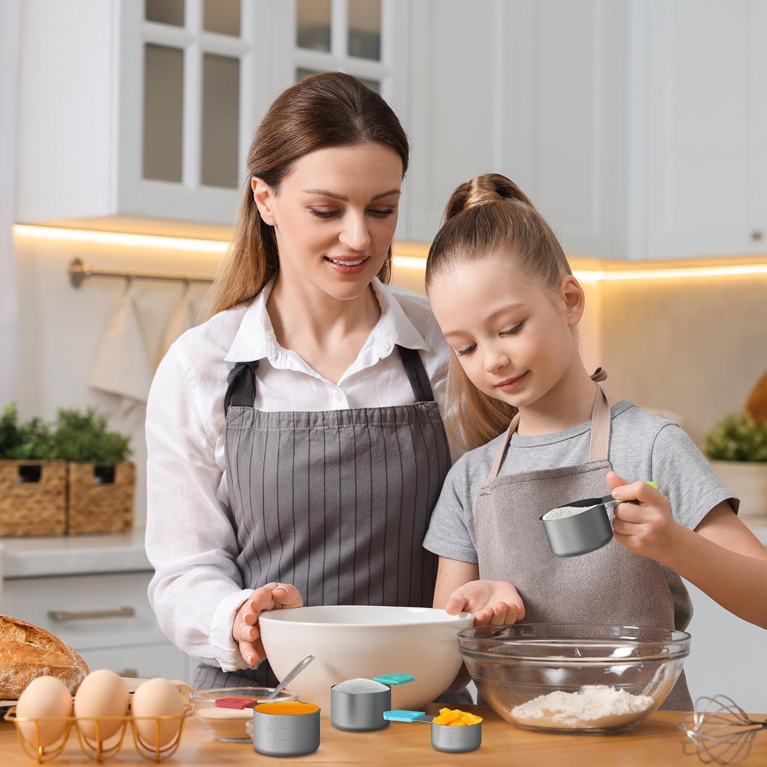 • Great Gift Idea - Our rust-resistant and durable measuring cups and spoons make a perfect holiday gift for both beginner and expert cooks in your life. Perfect for both dry and liquid ingredients, these kitchen gadgets will make baking and cooking a breeze.