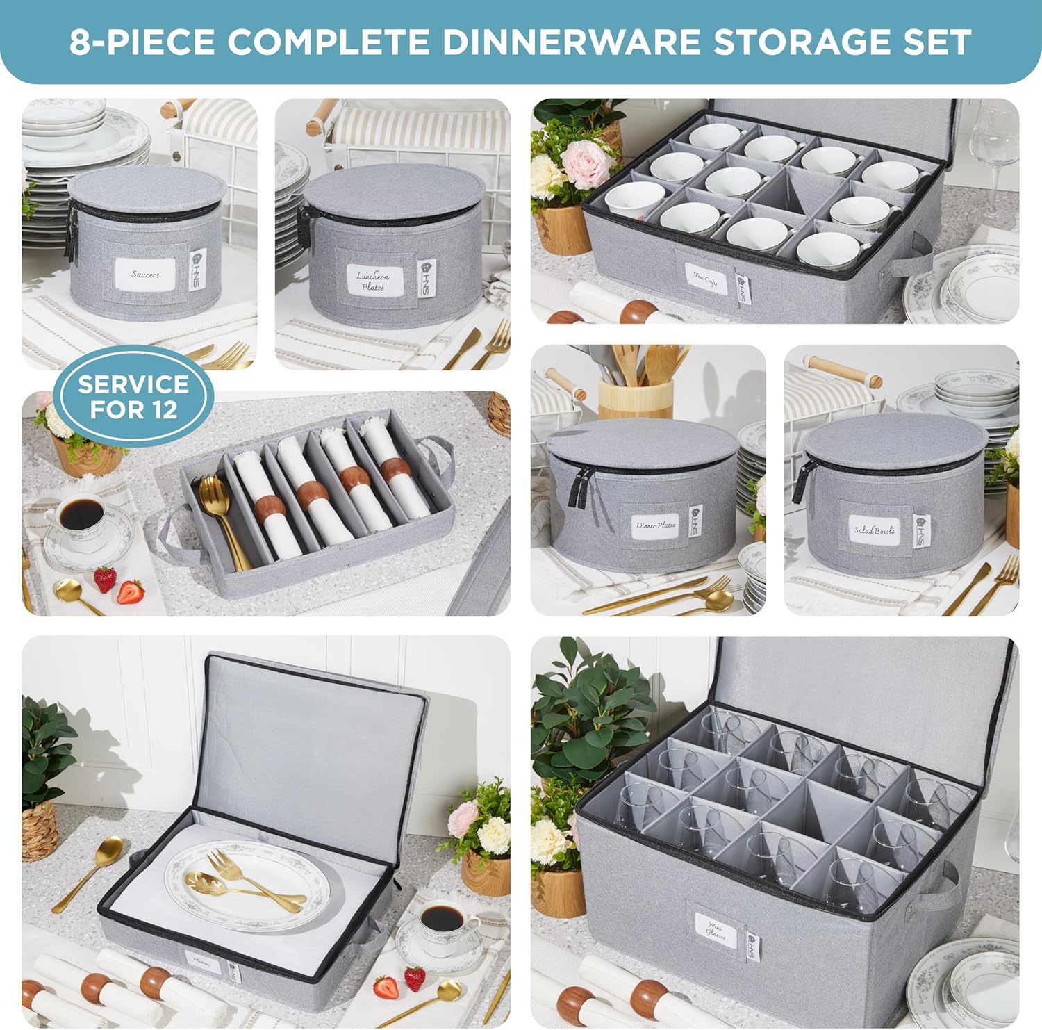 • HARD SHELL CHINA STORAGE CONTAINERS: Durable containers with hard shell construction provide long-lasting protection for delicate dinnerware during moves or storage, ensuring your valuable items remain intact.