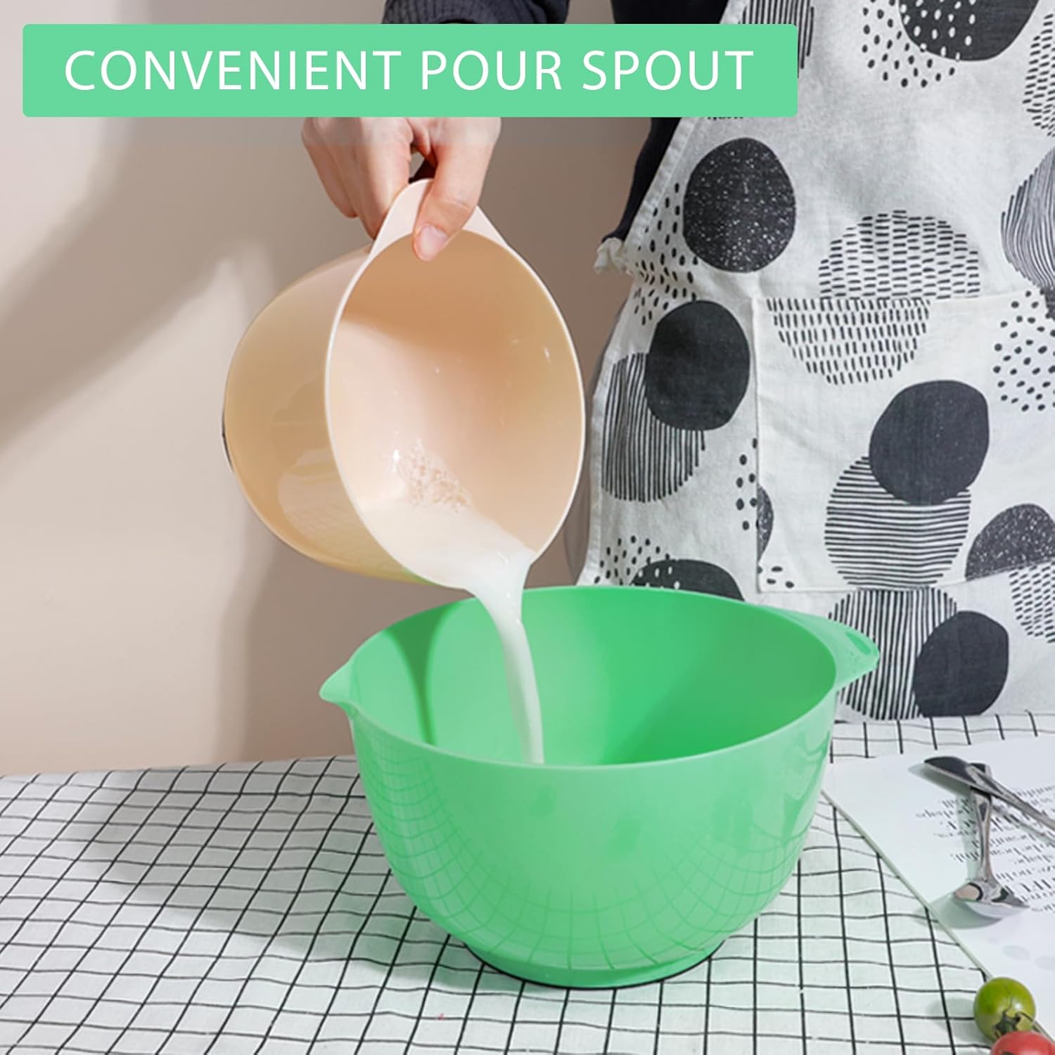 • 【Pour-Spout & Reduce the Mess】Crafted with pour spout and deep bowl design, easy for you to pour and combine liquid like milk or water into the ingredients, keeping you away from the hassles of spatters or spills. So as to make your kitchen countertop clean and tidy with ease. It is perfect for you to make a refreshing salad, prepare food, mix batters or whisk the eggs. With this mixing bowl set, elevate your cooking experience to a whole new level!