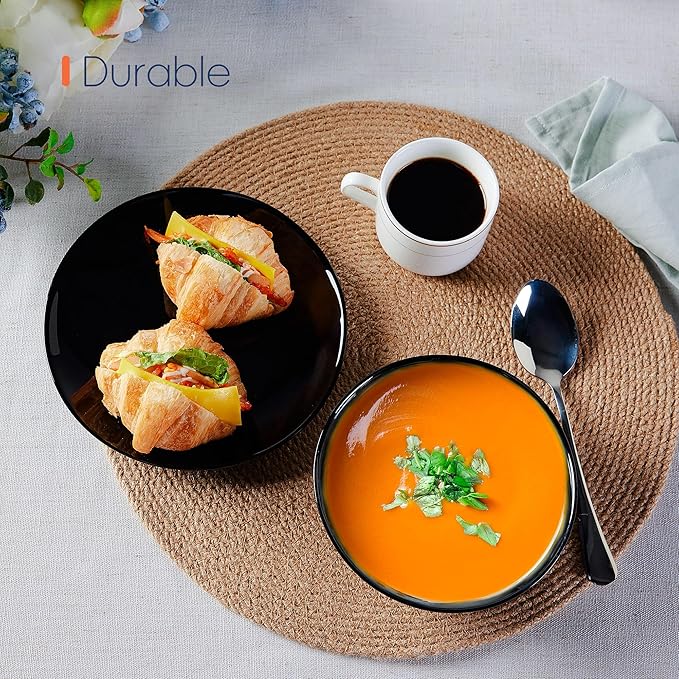 Dinnerware Sets for 6, LaGlint 18 Pieces Opal Glass Plates and Bowls Set, Dishwasher and Microwave Safe Dish Dinning Ware, Chip and Scratch Resistant Dishware Black