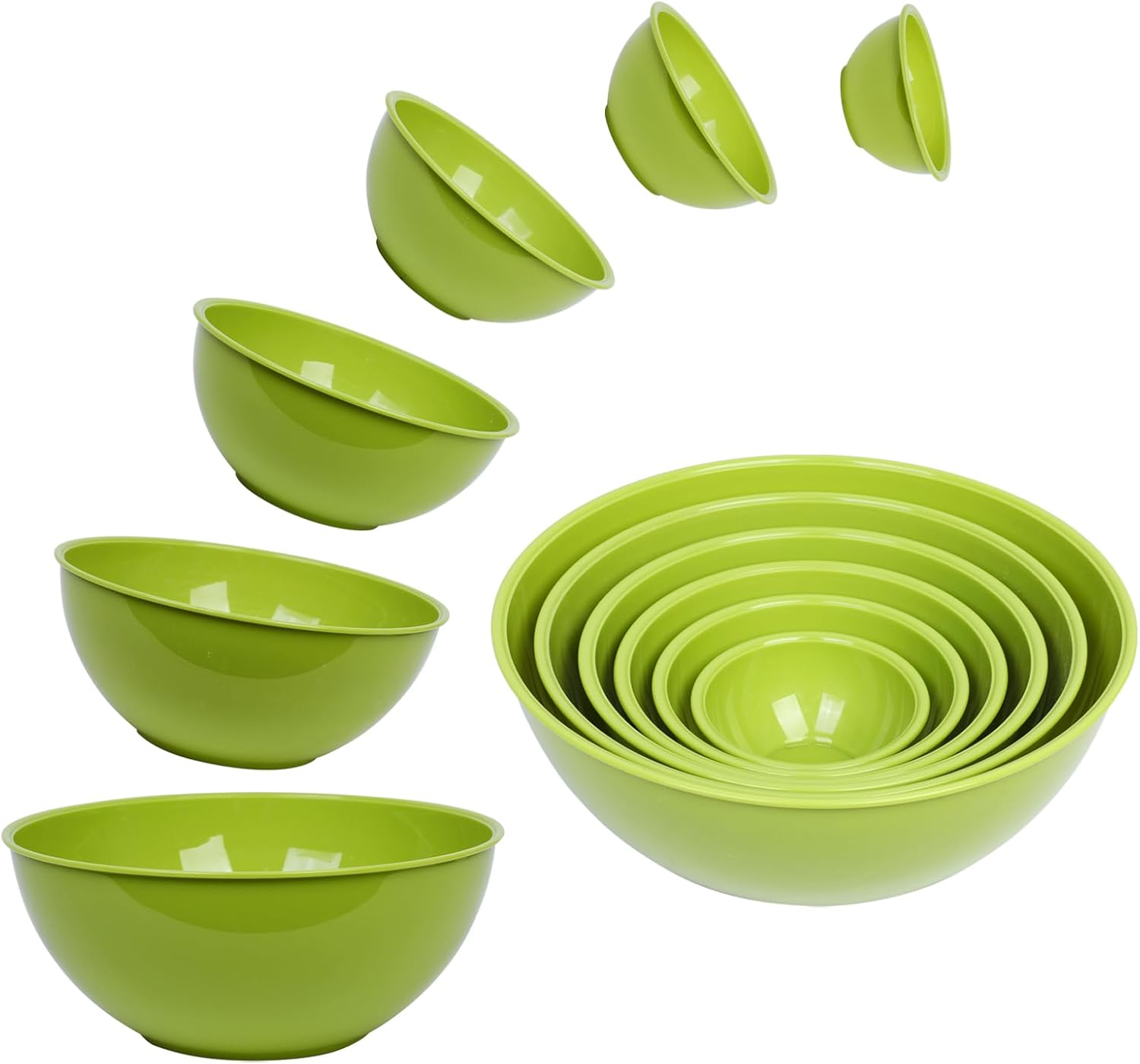 BoxedHome BPA Free Plastic Round Mixing Bowl with Lids, 12 Pack Nesting Bowls with Lids Set, Microwave and Dishwasher Safe Prep & Serving Bowls Great for Mixing, Baking, Serving (Light Green, 12pcs)