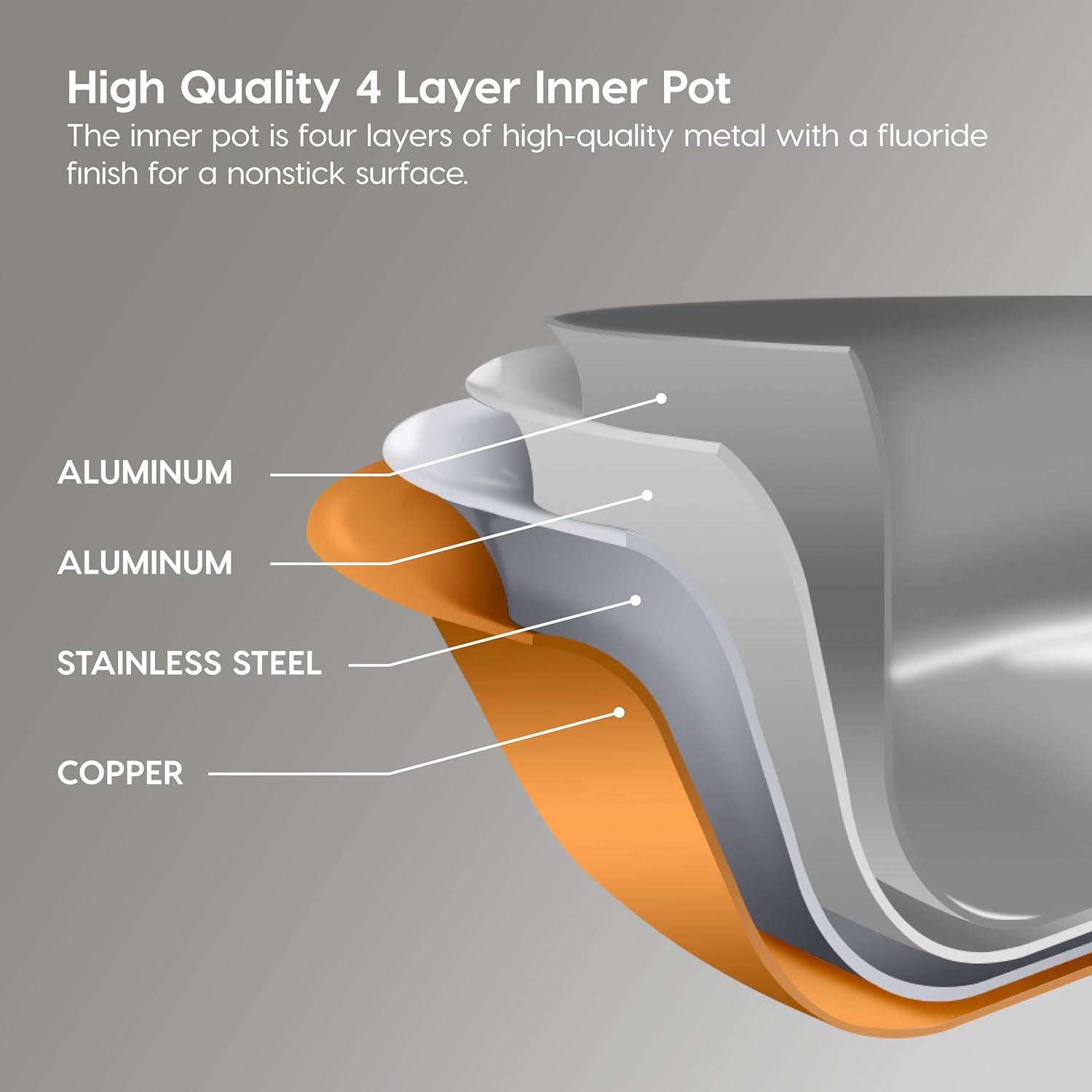 • TWO IN ONE – RICE COOKER: This high-quality Rice Cooker is perfect for your kitchen. The extra-thick inner pot cooks up to three cups of rice at once. The three-layer (aluminum, stainless steel, copper) composition effectively distributes and maintains an even heat to ensure the rice is cooked to perfection.