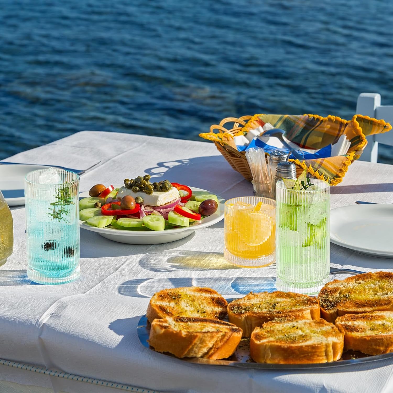 • 【Ribbed Beauty, Enhanced Experience】The ribbed texture of POLIDREAM drinking glass is not just for show. It provides a better grip, ensuring that your drink stays in your hand and not on the floor. The unique design also adds a touch of sophistication to your table setting. Whether you're sipping on water, juice, or beer, these tumbler glasses are a stylish choice