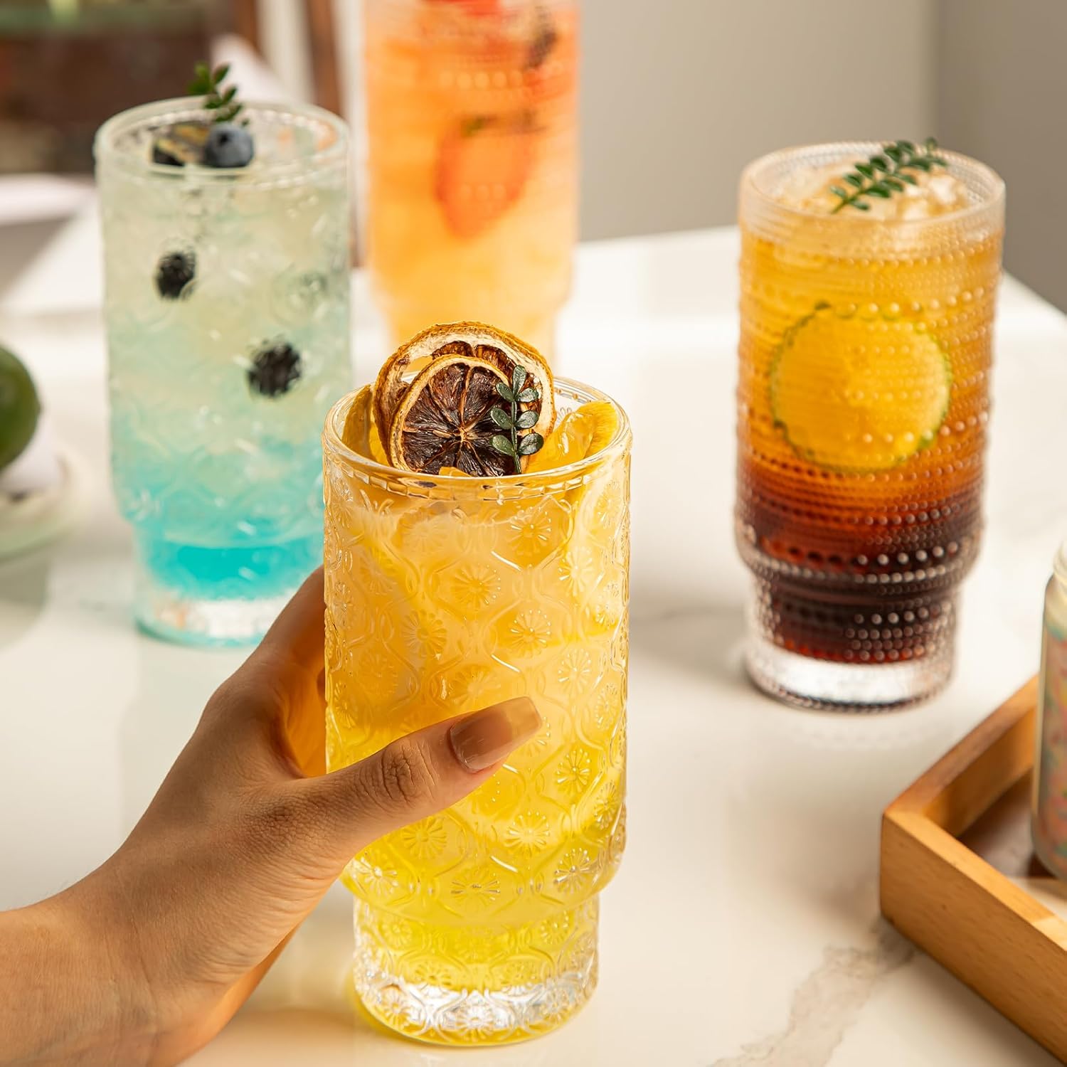 • Suitable for many occasions: These unique glassware are not just beautiful artworks for your home but also essential for serving important guests. At weddings, they add a touch of romance; at pool parties, they bring a refreshing vibe; during holidays and anniversaries, they create a festive atmosphere. They are perfect for birthdays, banquets, and more, making your parties memorable and impressive. These glassware set truly become the centerpiece of any occasion, enhancing the overall experience