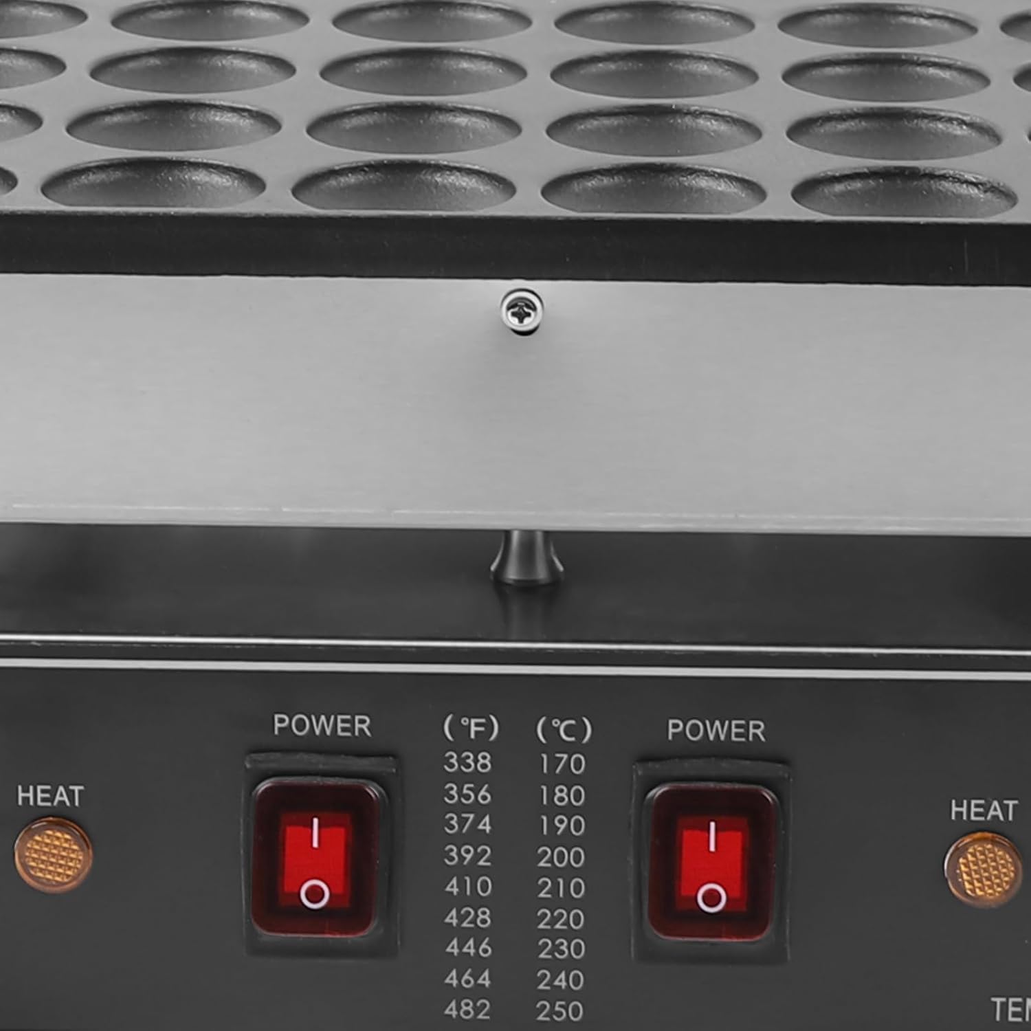 • 【Dual Temperature Control】: This Dutch pancake maker is equipped with a dual thermostat that allows for separate control of two different baking areas. The temperature range is 50-300°C (122-572°F).