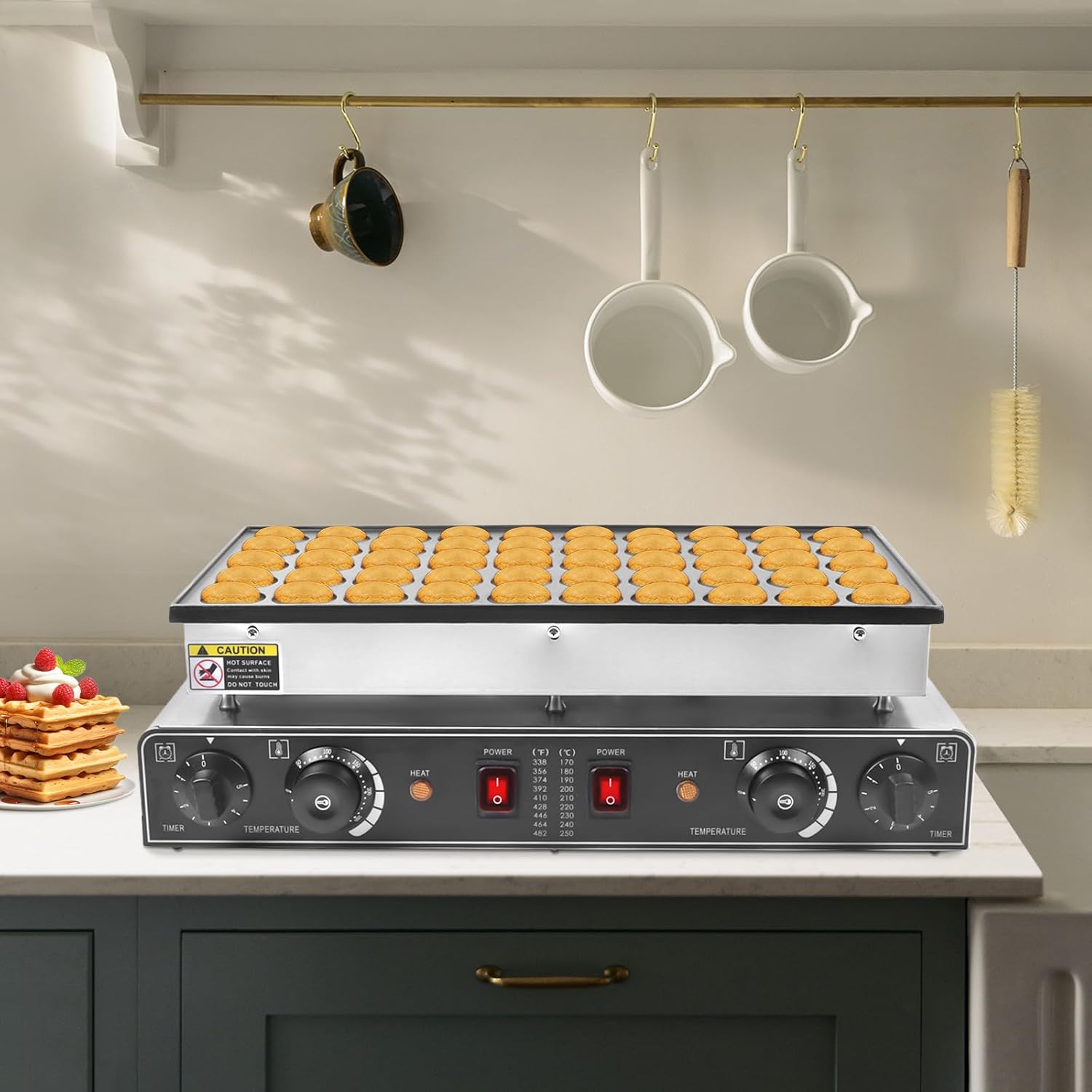 110V Mini Dutch Pancake Baker Maker, 50PCS 1700W Commercial Electric Nonstick Waffle Maker Machine, 1.77in Pancake Maker Electric Waffle Maker with Timer for Home and Restaurants