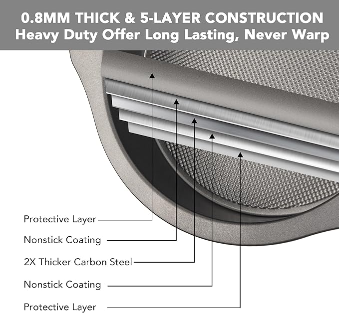 • PREMIUM EXTRA-THICK MATERIAL - With 68% thicker carbon steel, our heavy-weight carbon steel construction provides durability, bulit to last, never warp. Oven-safe to 450 degrees F. DIMENSIONS: 9 x 9 in. (23 x 23 cm) and 2.2” (5.6 cm) deep. Hand wash recommended. For best results, wash in warm, soapy water before first and after each use. Set of 2.