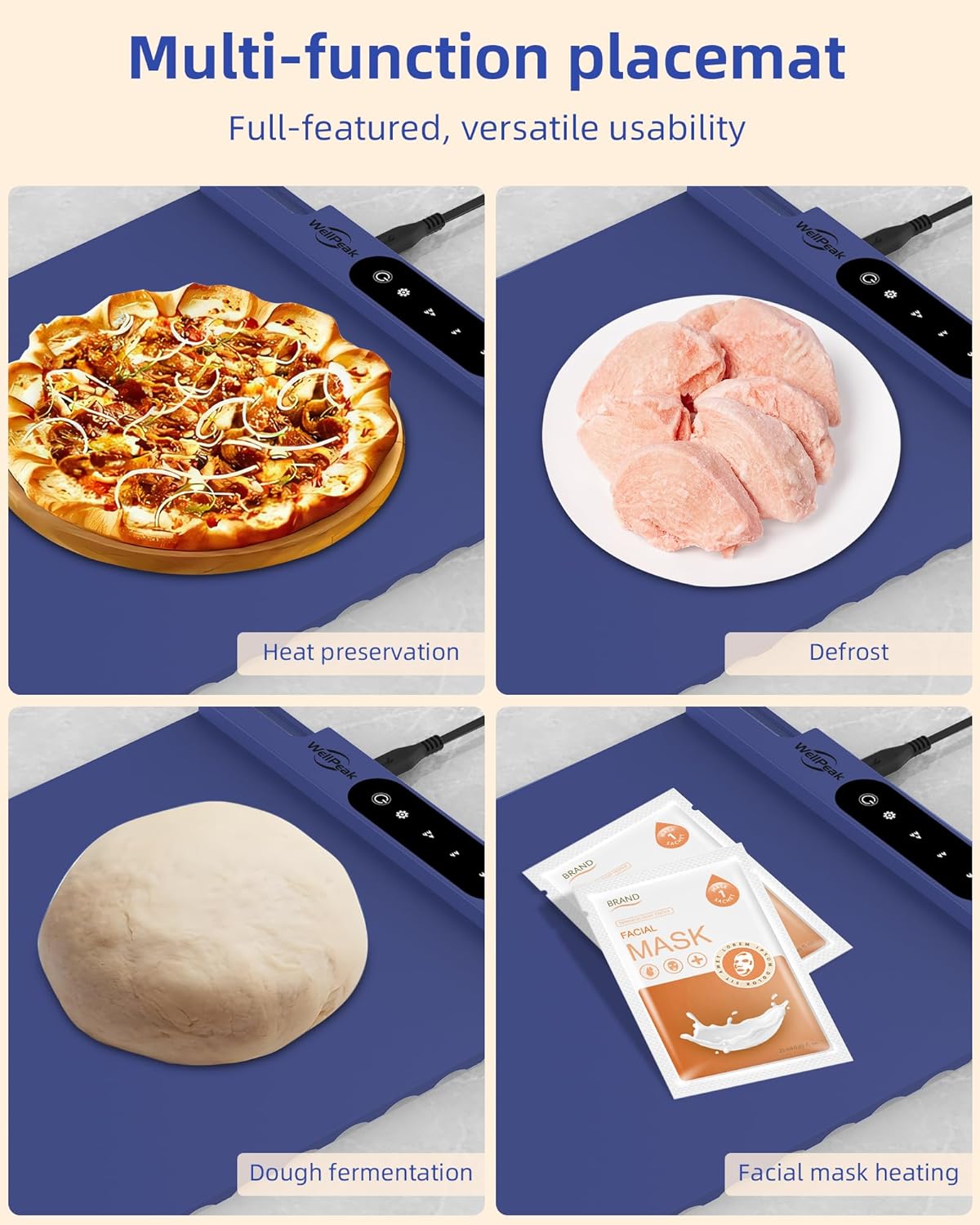 • Auto-Off Safety: The warming mat will shut off automatically after 2 hours to ensure your dishes stay perfectly warmed without the risk of overcooking or unattended heating.