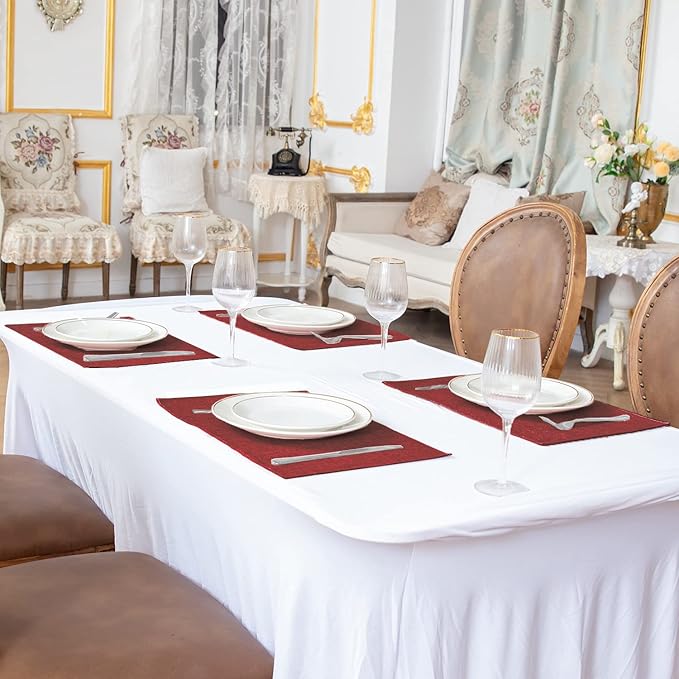 Linen Fabric Placemats Set of 4, Machine Washable, Heat Resistant, Wrinkle Free, Thick Polyester Kitchen Place Mats for Dining Table (Burgundy)