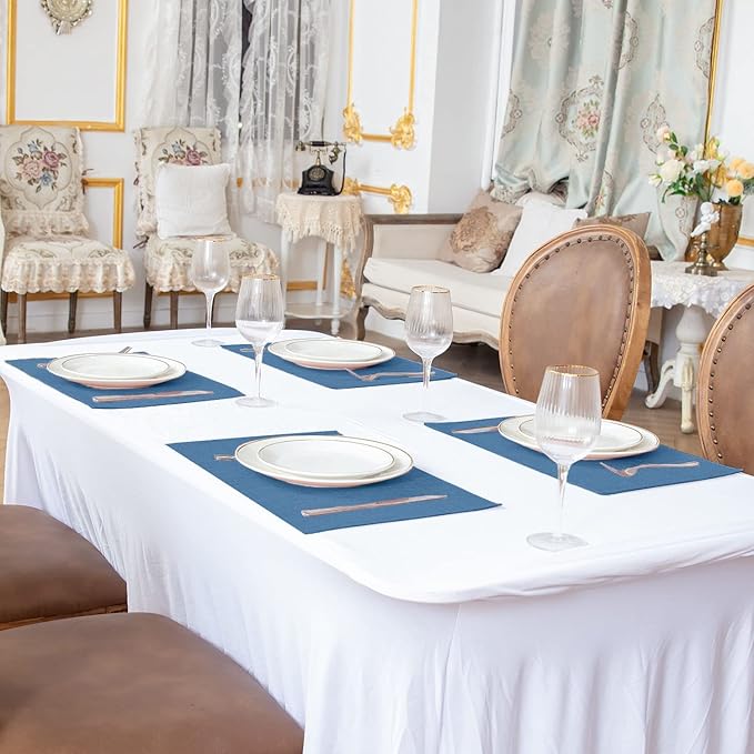 Linen Fabric Placemats Set of 4, Machine Washable, Heat Resistant, Wrinkle Free, Thick Polyester Kitchen Place Mats for Dining Table (Navy Blue)