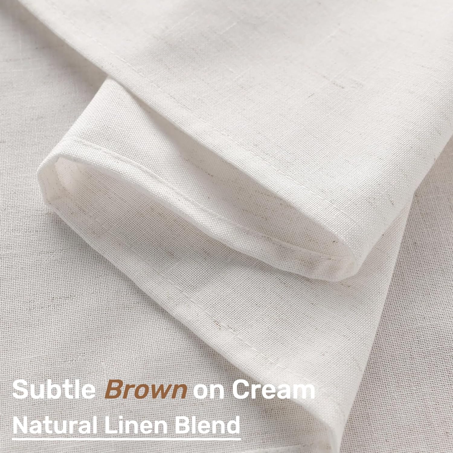 • Natural Linen Blended: Expertly crafted from a combination of linen and polyester, this linen tablecloth brings a richly textured fabric that drapes beautifully and feels soft to the touch. The cross-woven design adds a subtle, sophisticated pattern and enhances the natural linen texture, offering a more refined look compared to plain polyester alternatives