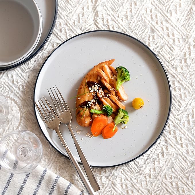 • STACKABLE DESIGN:The stackable feature of this dinnerware set is a space-saver for your cabinets,making storage not only simple but also highly efficient.
