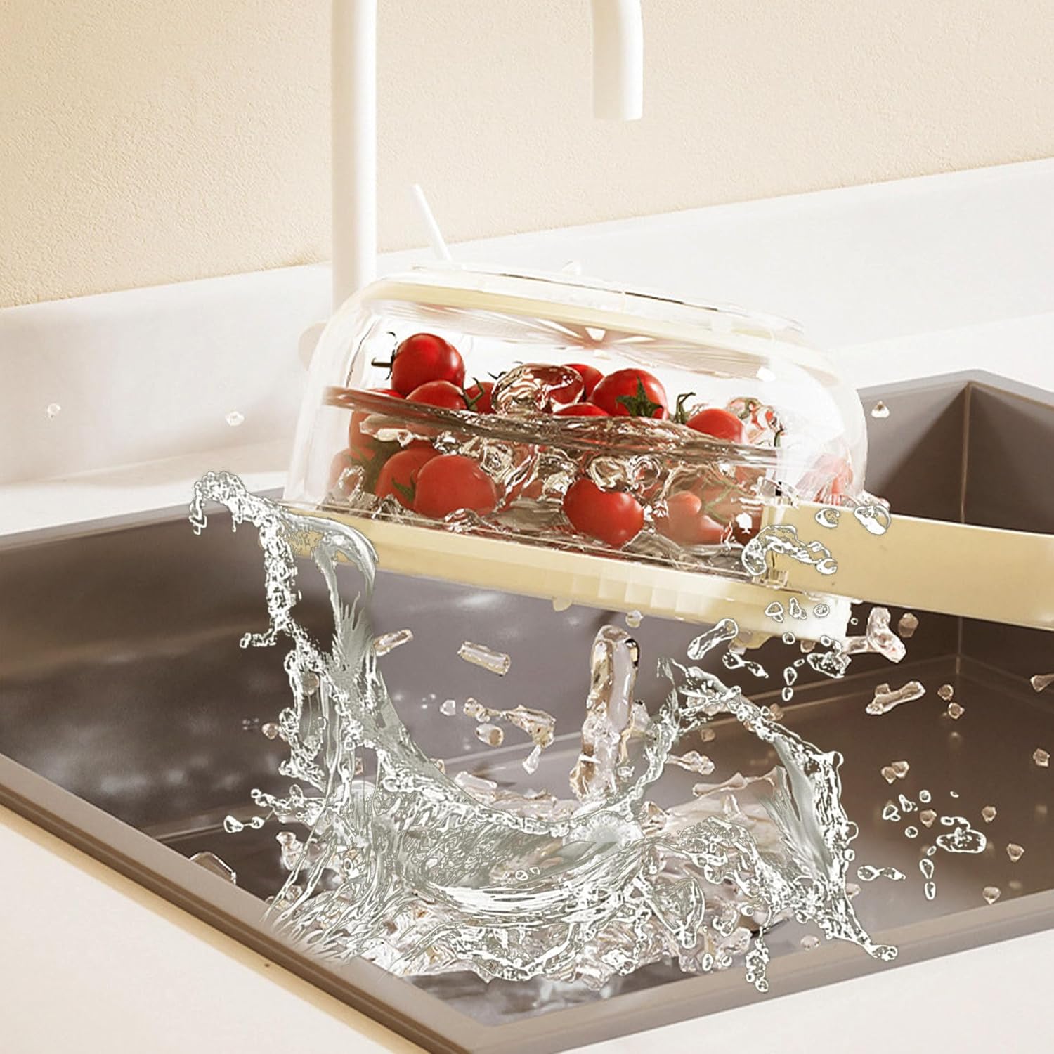 2025 New Draining Basket with Lid, Fruit Drainer Container with Handle, 2 in 1 Multi-function Drain Basket, For Rinsing Straining Vegetable Washing Fruit Portable Storage Container (Beige)