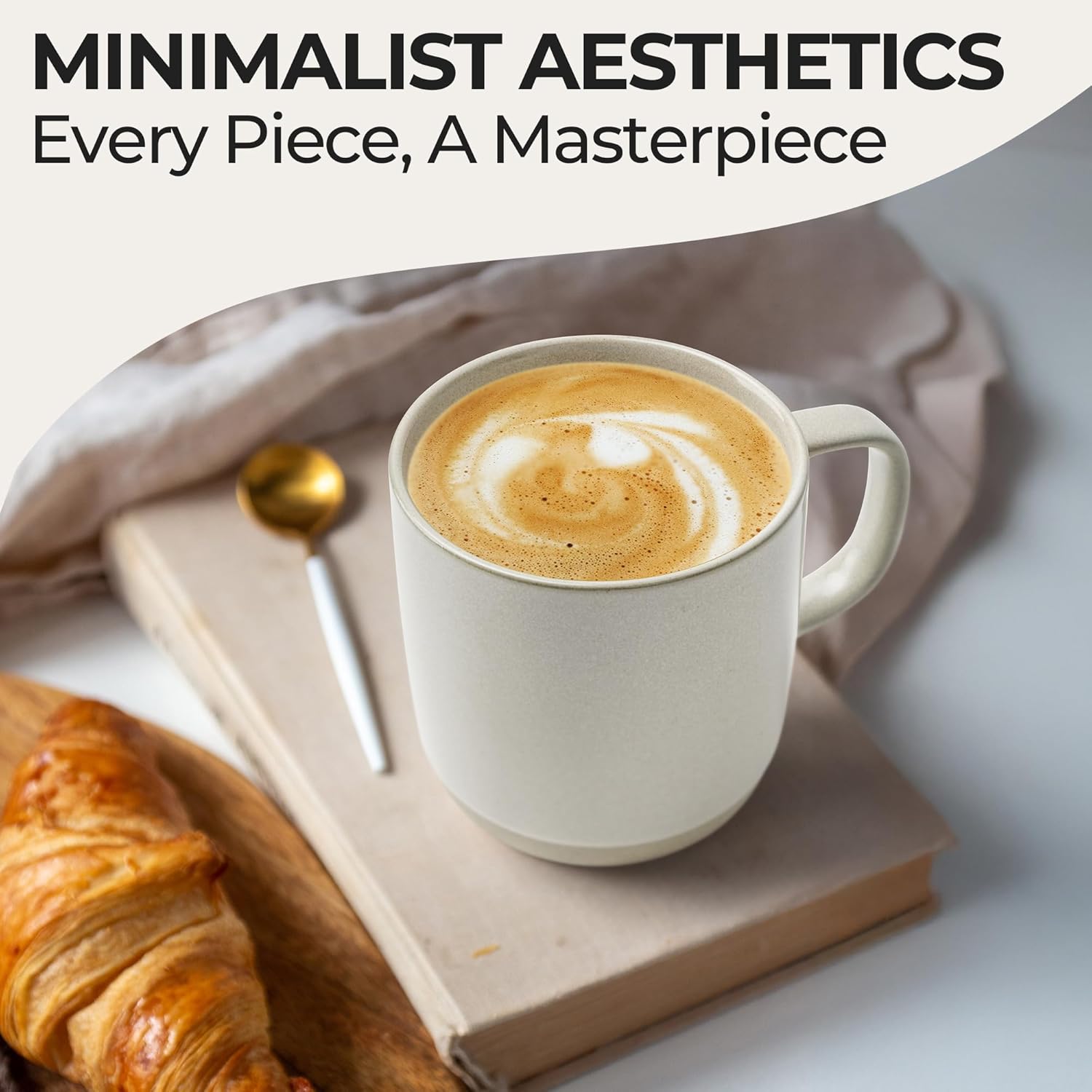 • π”ππˆππ”π„ 𝐀𝐍𝐃 πŒπŽπƒπ„π‘π – Each ceramic coffee mug features a minimalist and timeless two-tone design. The cozy cream colors make these tea mugs a perfect gift for design enthusiasts. The large handle of our coffee mug ensures a comfortable grip. They also feature an easily stackable design for efficient storage.