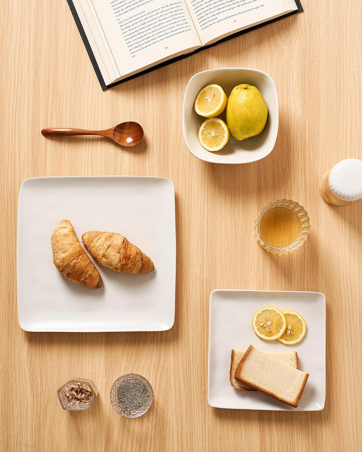 Famiware Dinnerware Sets for 4, Ocean Square 12-Piece Kitchen Plates and Bowls Sets, Microwave and Dishwasher Safe, Scratch Resistant, Matte White