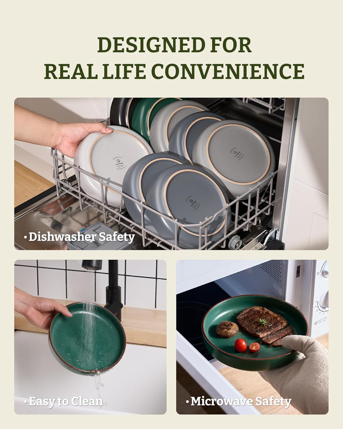 • 【STACKABLE & EASY TO CLEAN】These dishes are stackable and don't take up a lot of space in your cupboard. Easy to clean, you can wash them with foam and water or place them into your dishwasher.