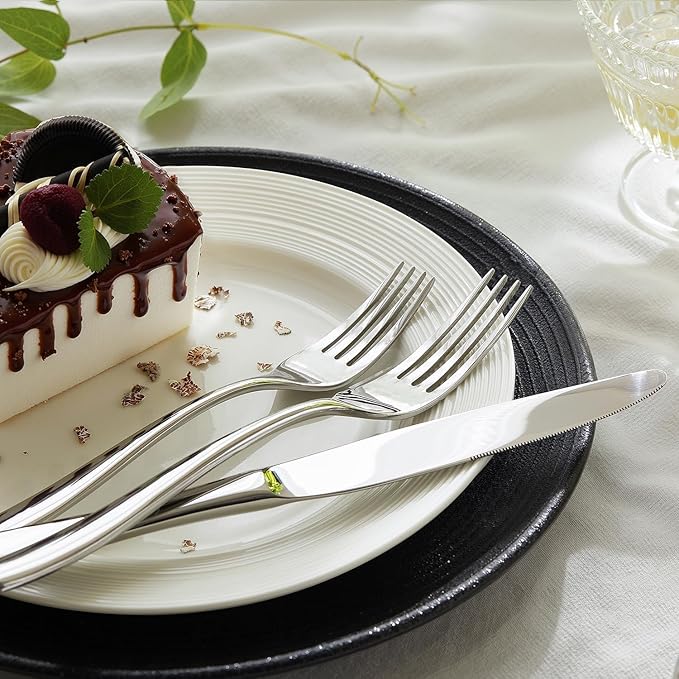 • Vintage Silver Finish: Crafted from 18/0 stainless steel with a timeless vintage look. The gently curved handles add elegance, while the finish resists fingerprints and stays looking clean. Safe for dishwashers, so cleanup is easy without damaging the surface