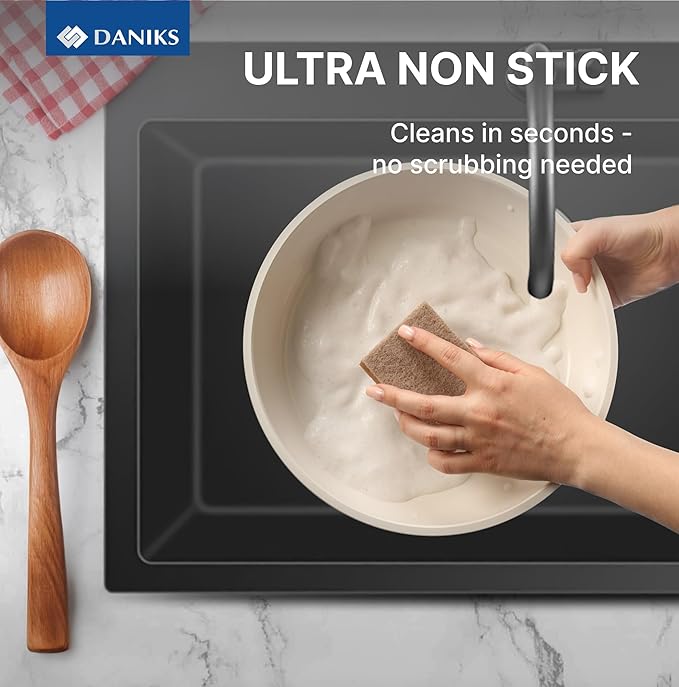 • 🌱【HIGH-QUALITY CERAMIC COATING】Our pots and pans feature a high-temperature-resistant ceramic coating, crafted without PFAS, PTFE, PFOA, lead, or cadmium, offering a safer cooking experience for your family.