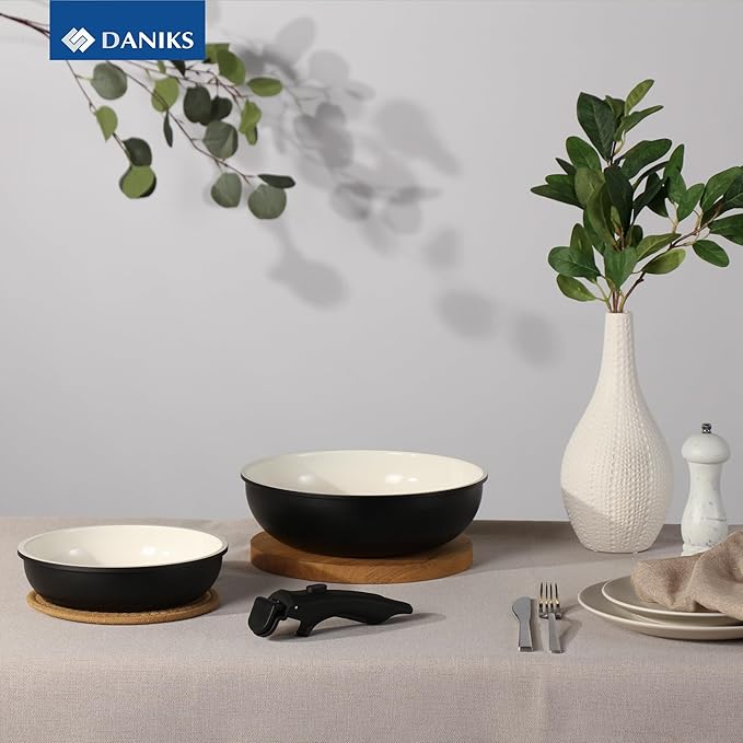 Daniks 9-Piece Nonstick Cookware Set, Ceramic Induction Pots and Pans with Detachable Silicone Handles, Oven & Dishwasher Safe, Black