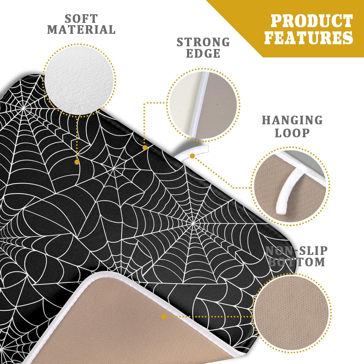 Halloween Dish Drying Mats for Kitchen Counter 16×18 Inch Halloween Spiderweb Spooky Festival Small Microfiber Drying Mat Kitchen Accessories Dish Rack Mat Drainer Pad Washable Absorbent