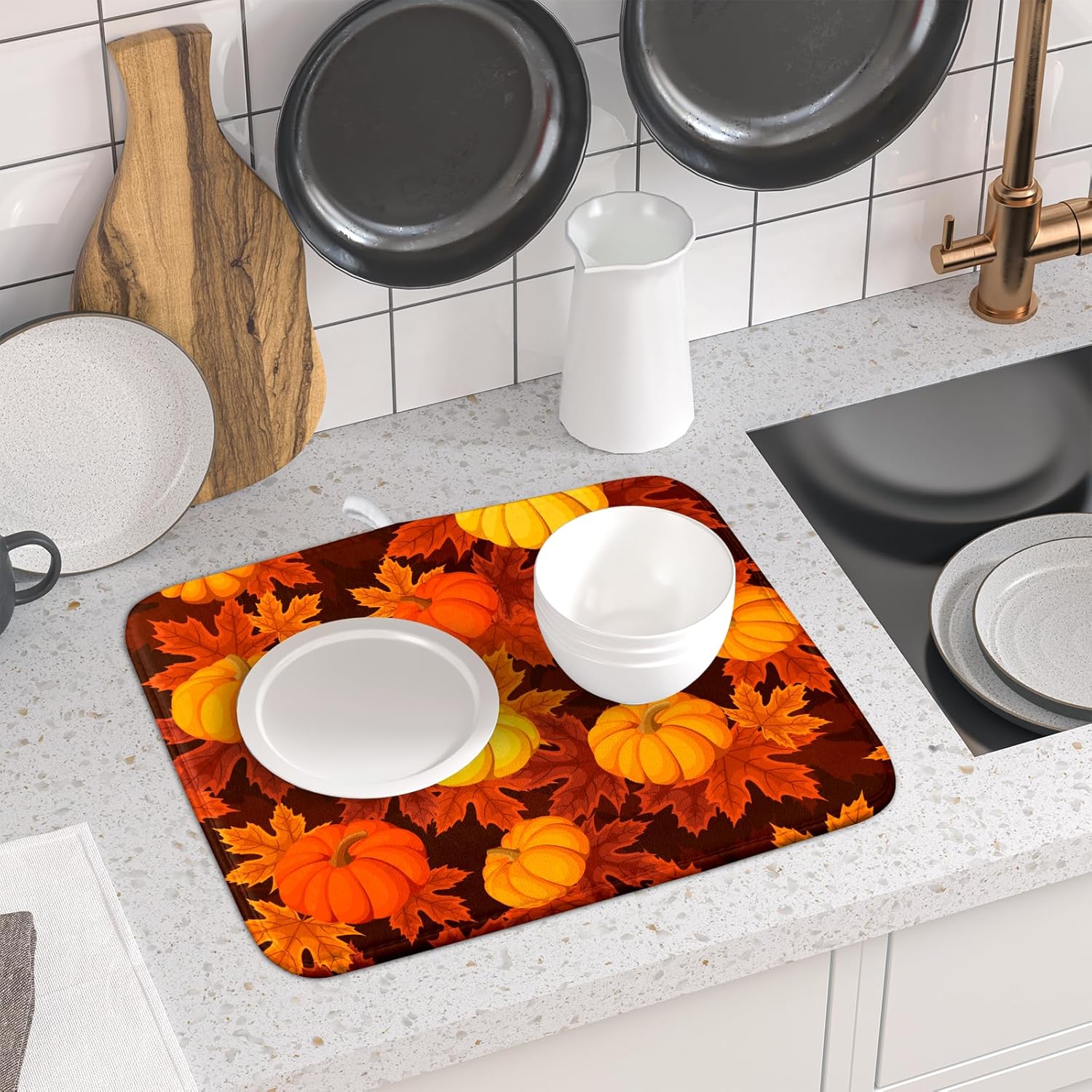 • Feature:This fall dish drying mats use high absorbent microfiber,duralble and washable,Keep your counter dry and clean.