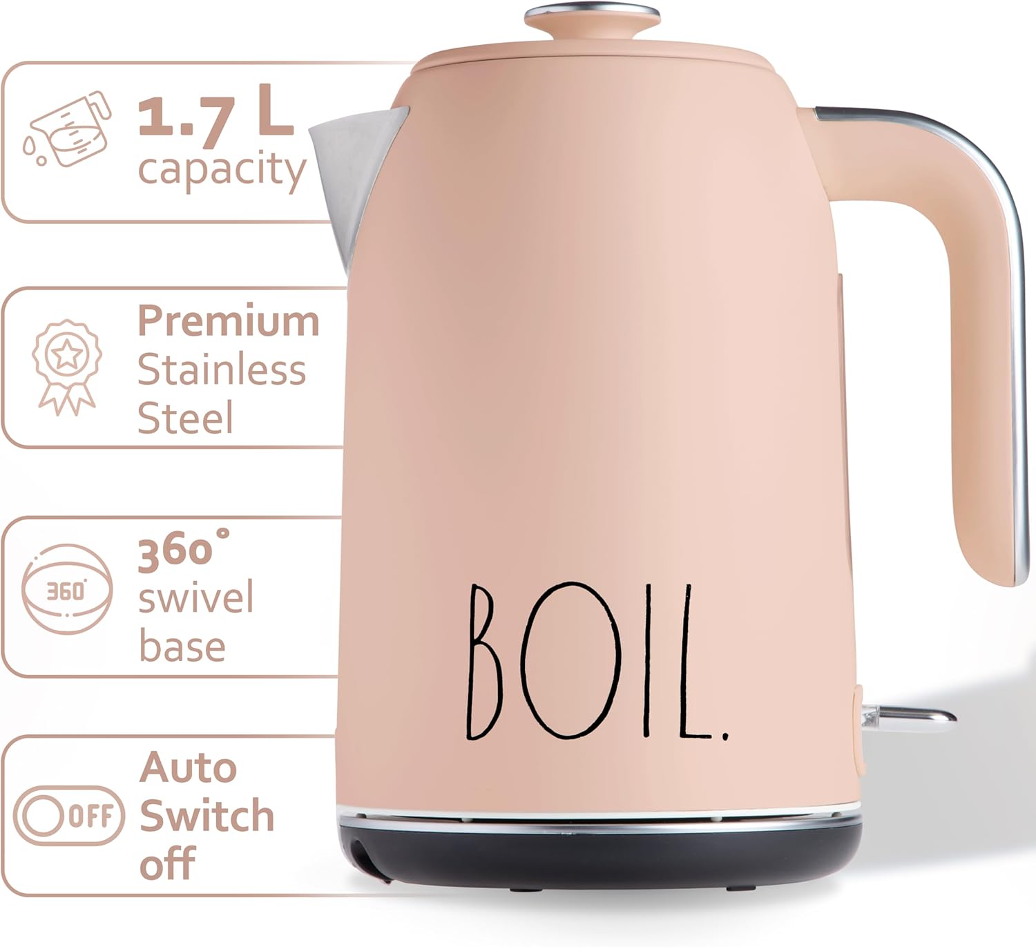 • Add Simple Style to Your Home and Countertop - Accessorize your kitchen with this electric kettle featuring labels in Rae Dunn’s signature font and sand matte finish. Add Rae Dunn style to your counter with an essential electric appliance that will add convenience and warmth to your morning.