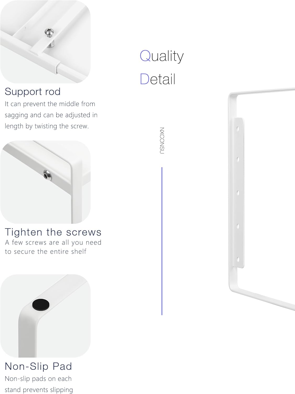 • PREMIUM QUALITY: Made from sturdy 1mm metal, this cabinet shelf can hold up to 50LBS of household items. It features a load-bearing rod in the middle, ensuring even balance and preventing the shelf from collapsing inward.