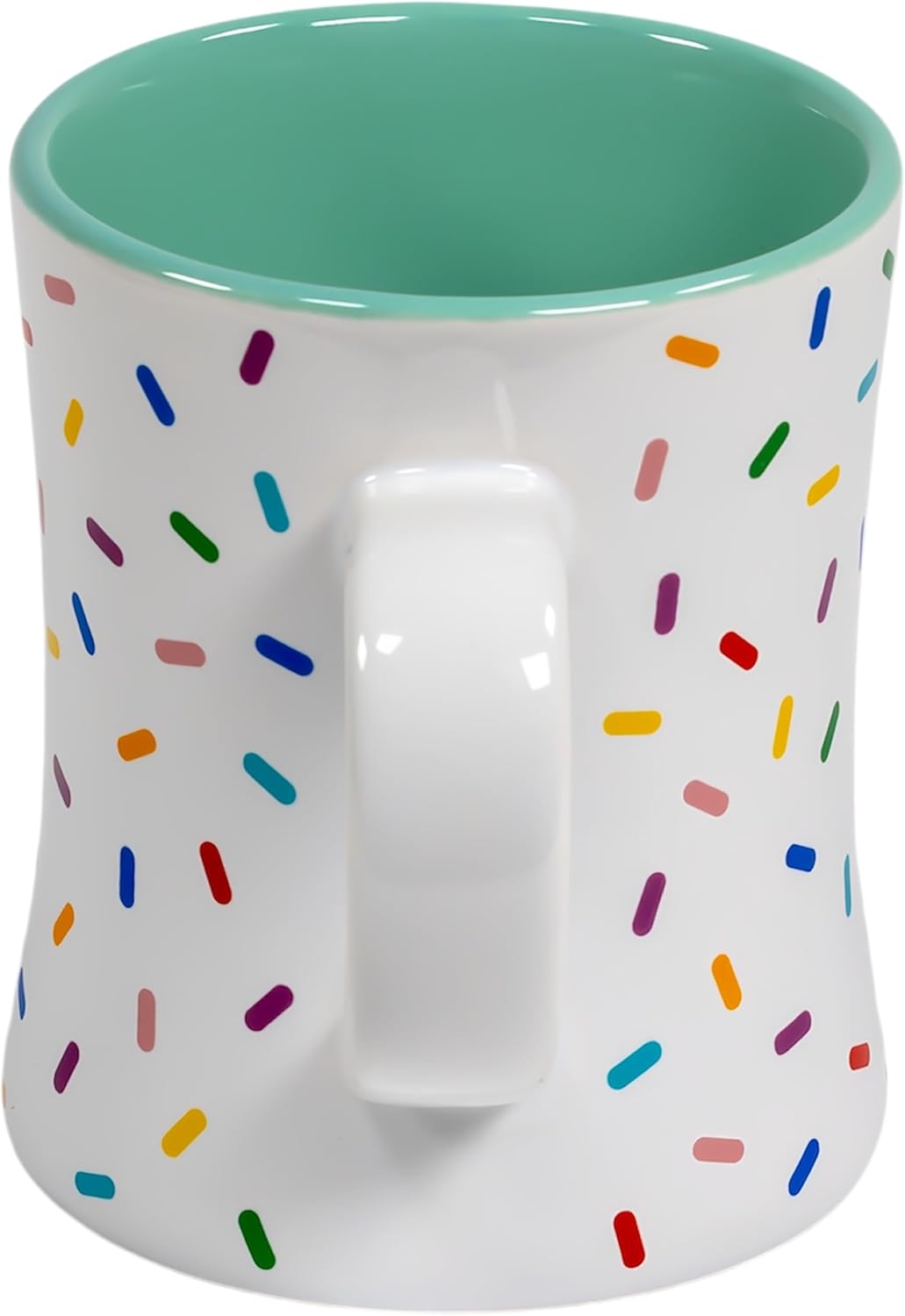 Mug | Mint Green Cute Coffee Mug with Rainbow Sprinkles | Birthday Cake Coffee Cup Gift | White Ceramic Cup with Green, Yellow, Red, Pink, and Blue Sprinkles | Fun Colorful Pattern