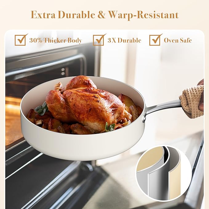 • Healthy Nonstick Ceramic: This cookware set delivers 5X superior nonstick performance and is made from 100% Free PTFE, PFOA, PFAS, Cadmium, Lead materials for safe, long-lasting use.
