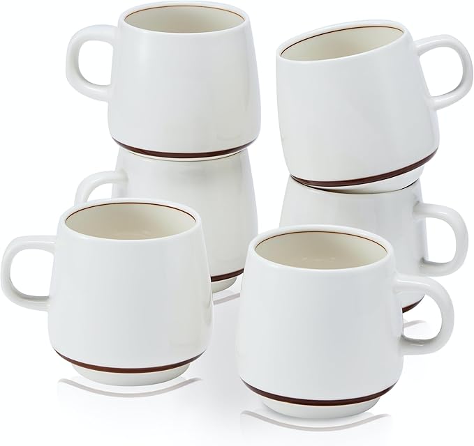 • 11oz Coffee Mugs: These mugs are the perfect size for daily use at home or in the office. If you are a coffee lover, this coffee mug set is undoubtedly a great choice. 6-piece set of 11 ounce premium porcelain coffee mugs for food service including restaurants, catering, parties, and everyday use.