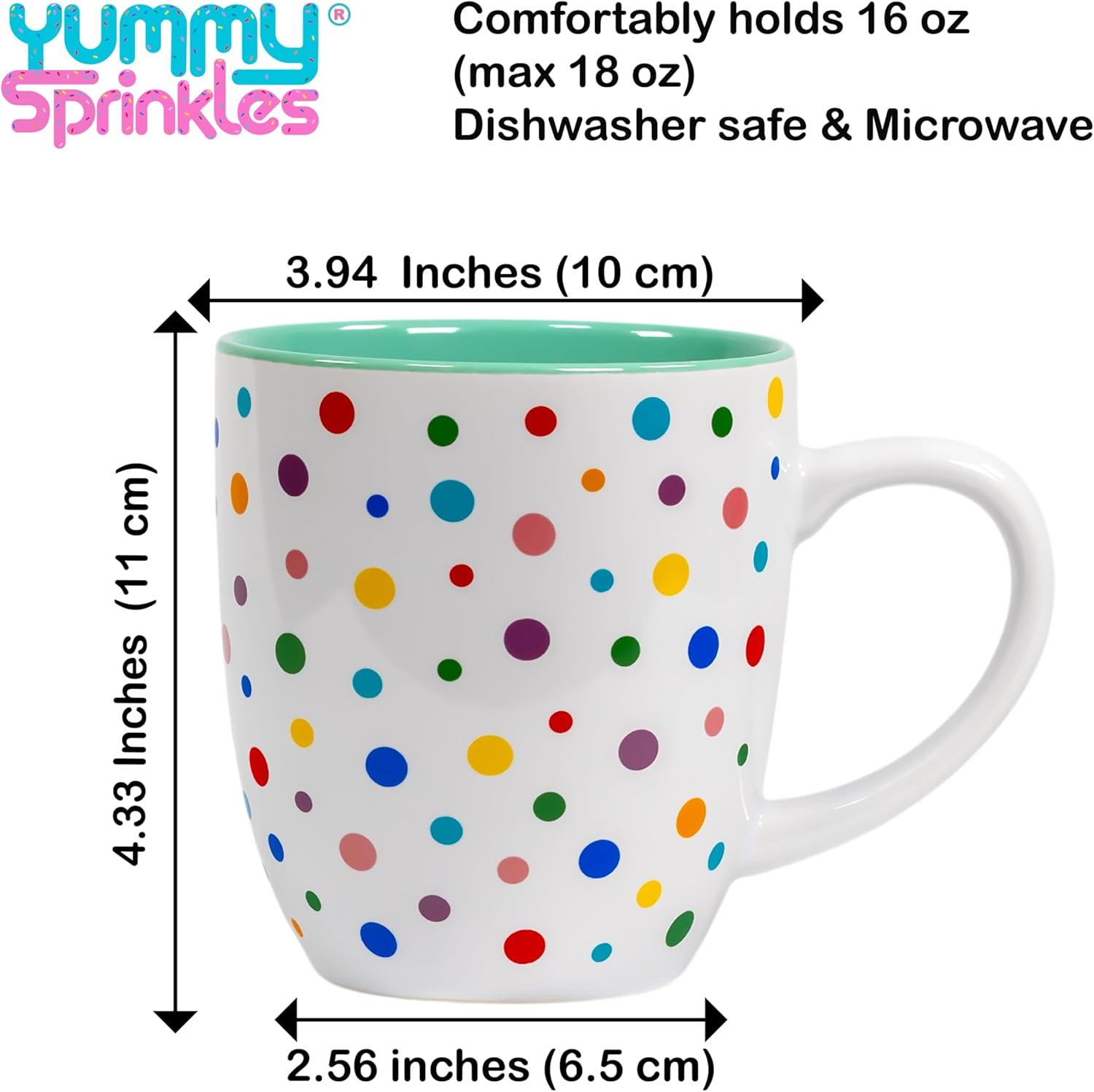 • CUTE COFFEE CUP TO PERK UP YOUR DAY: Enjoy the pops of color both inside and out! Our oh-so-chic novelty ceramic coffee mug offers a bright and cheery greeting to your morning cup of brew!