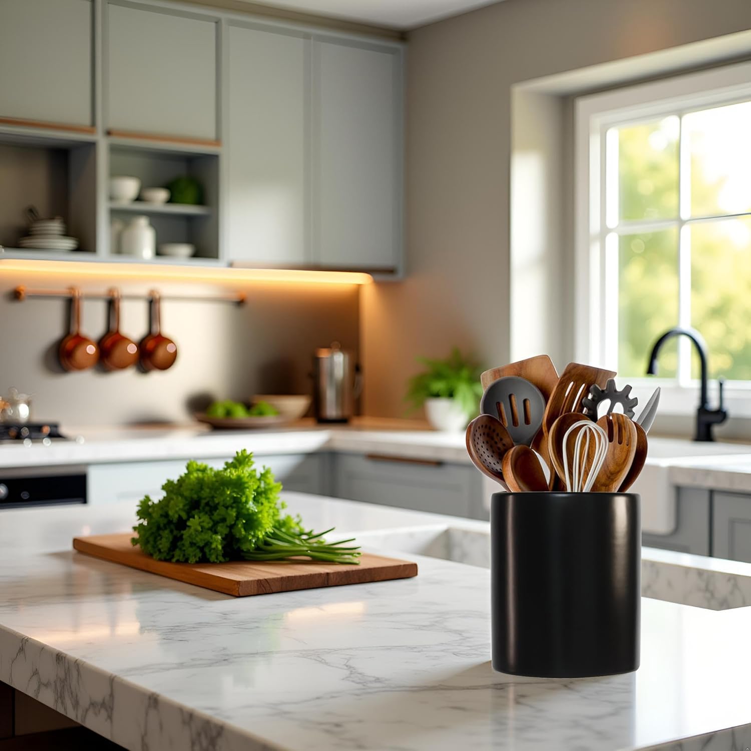 • 【SOLID AND SECURE】SIEBOLD kitchen utensil holder for kitchen counter provides easy access to your utensils, Crafted from premium ceramic materials, these holders are not only robust but also easy to clean. Rest assured, they will remain securely in your countertop, giving you peace of mind while using them.