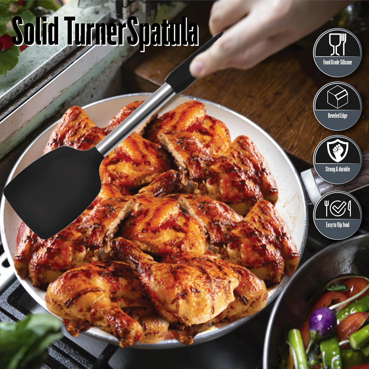 Silicone Spatulas set for kitchen: Heat Resistant Turner & Slotted Silicone Spatula for Cooking, Non Toxic Kitchen Utensils, Ideal kitchen spatula turner for Eggs & Pancakes - Black