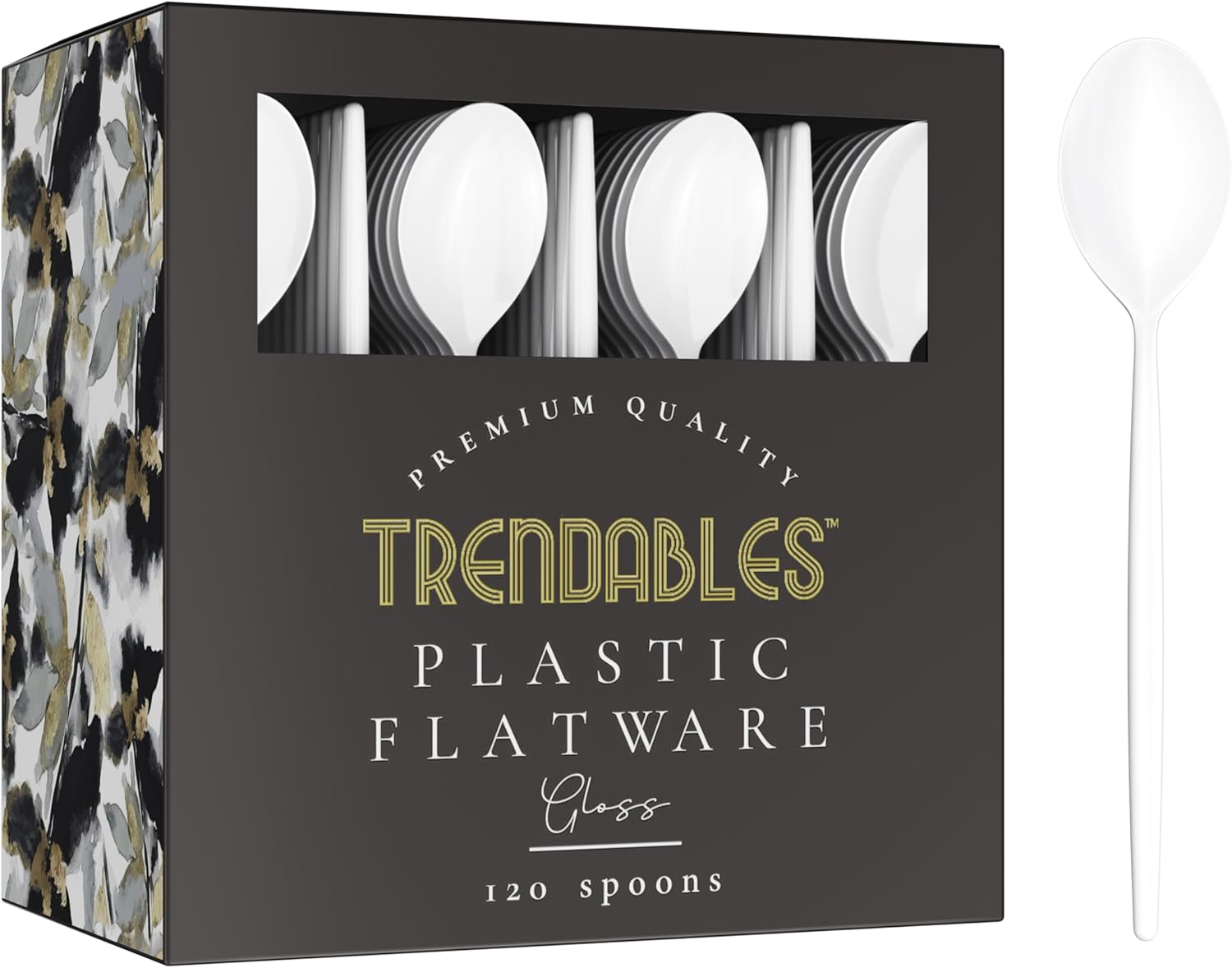 Trendables White Plastic Cutlery - Disposable Spoons & Cutlery Set, 120 Count