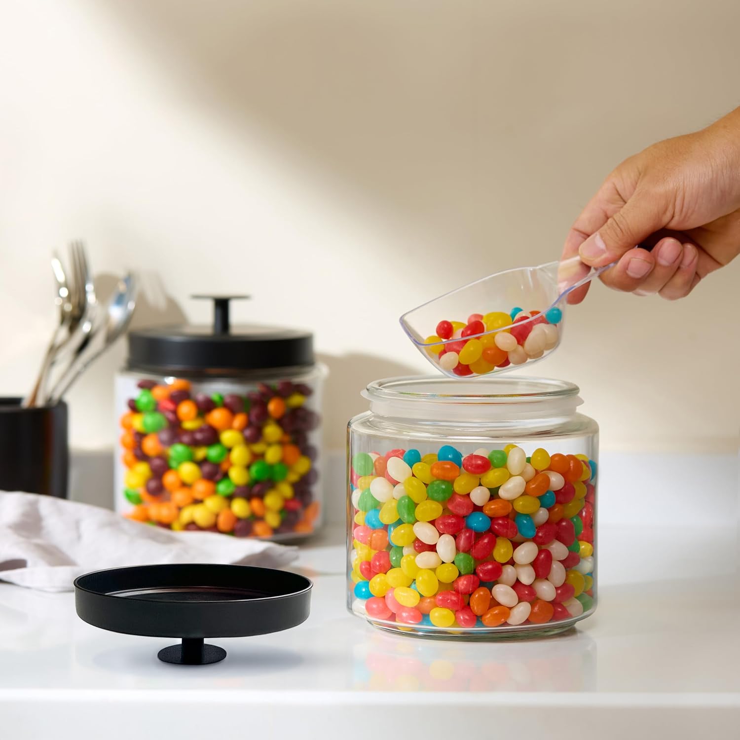 KooK Glass Kitchen Canister Set, Food & Storage Containers for Pantry, Bathroom Apothecary Jars, Tinplate tight Lids, Counter Organizers, 50 oz, Black, Set of 2