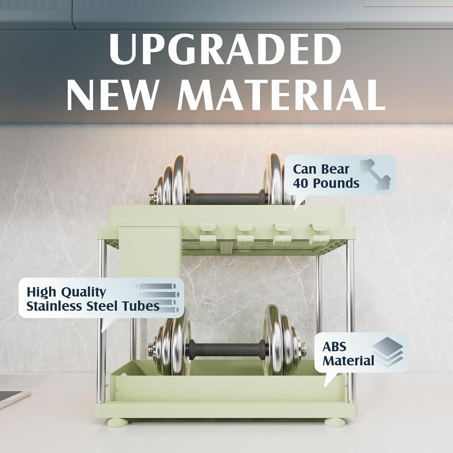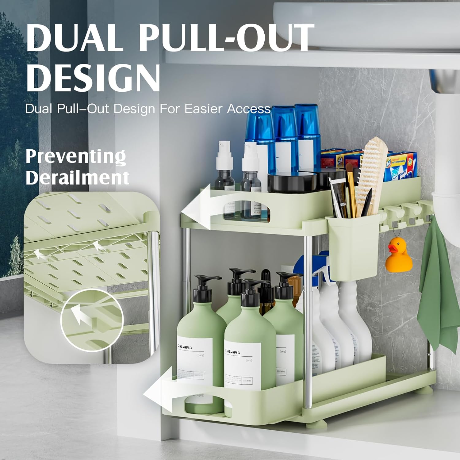 Under Sink Organizer, 2 Pack Under Kitchen Bathroom Cabinet Organizer, 2 Tier Under Bathroom Kitchen Sink Organizer, Adjustable Height Bathroom Kitchen Cabinet Organizers and Storage, Green