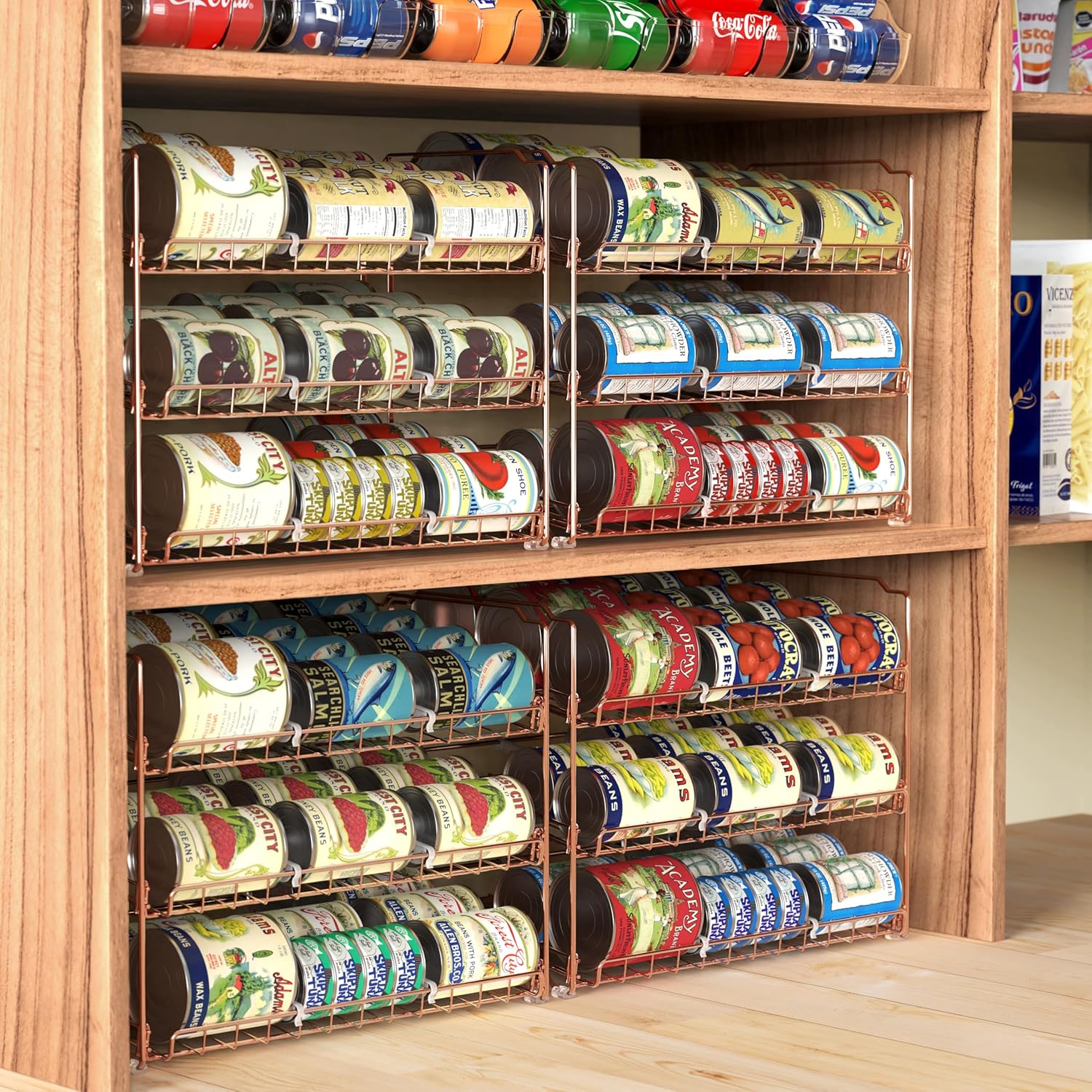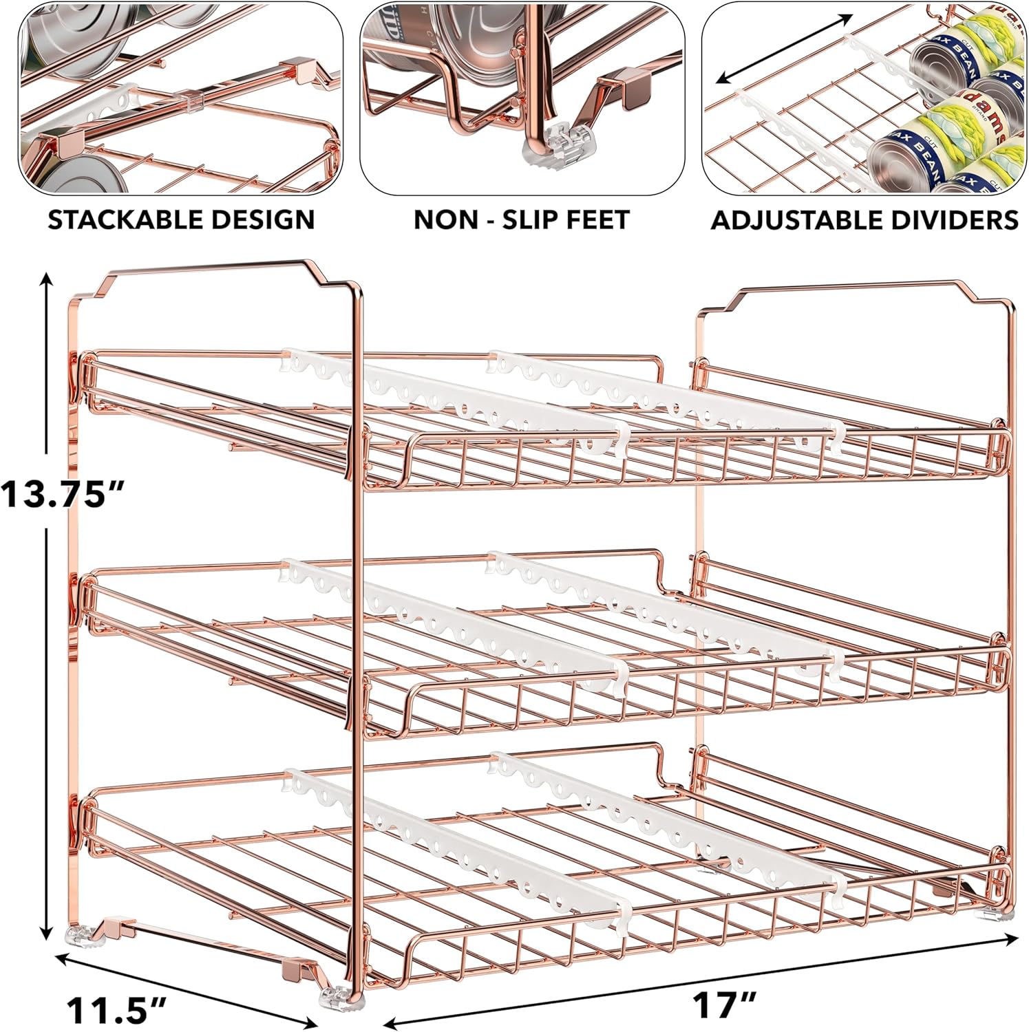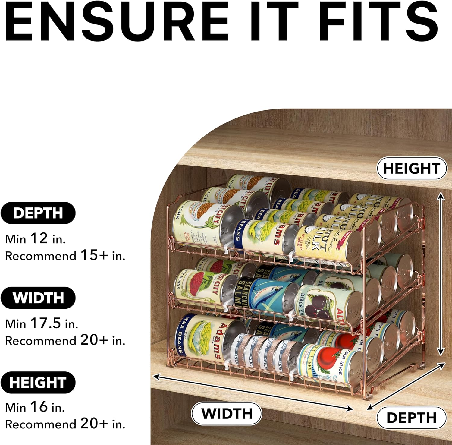 Simple Houseware Stackable Can Organizer Rack for Pantry/Cabinet – 11.5" D x 17" W x 13.75" H, Holds 36 Cans, 3-Tier Can Food Storage Dispenser, Rose Gold