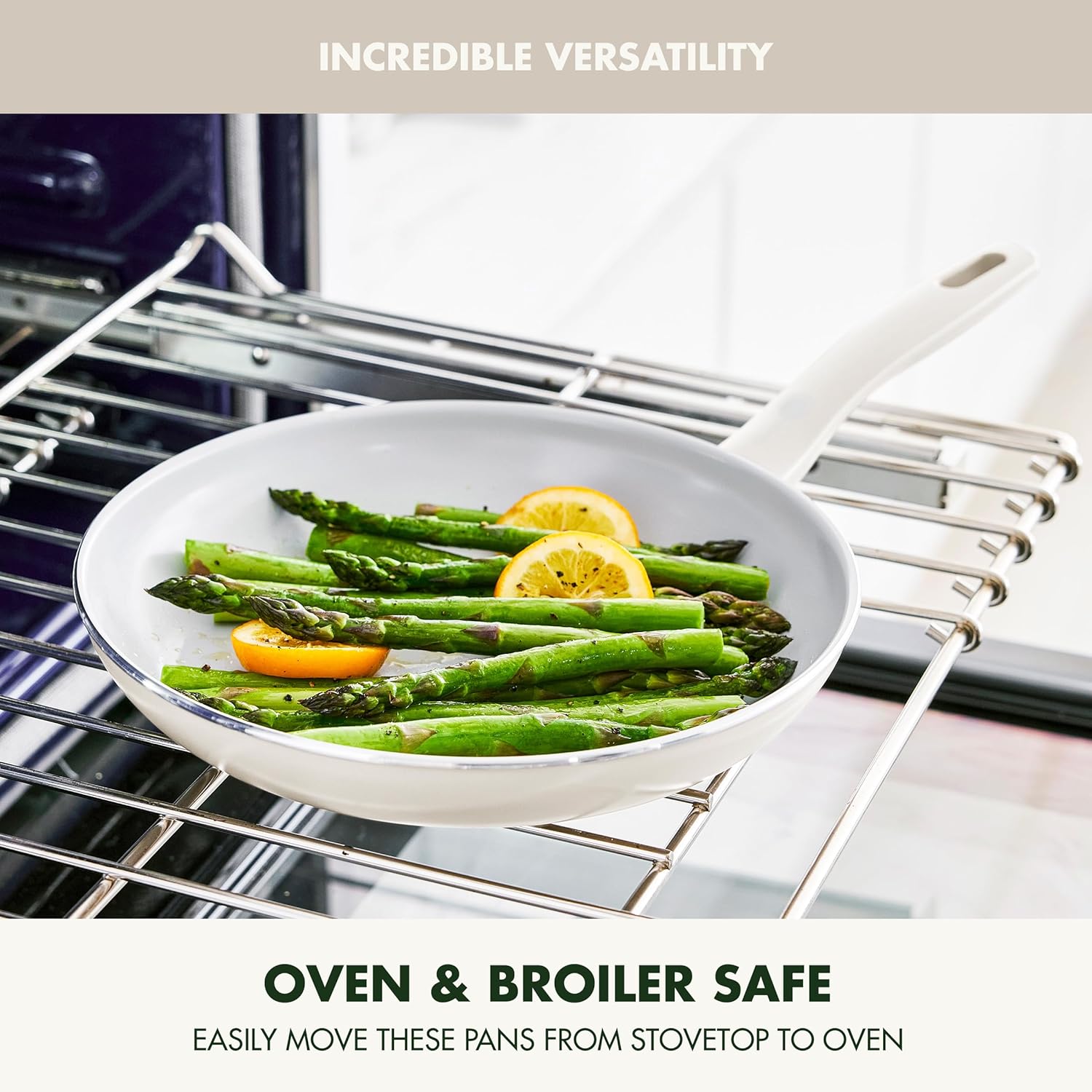 GreenPan Dover 8” Frying Pan Skillet with Spatula, Non-Toxic PFAS-Free Ceramic Nonstick Coating, Sear Saute Fry Egg Omlete, Dishwasher & Oven Safe, Stay Cool Handle, Easy Pour Rims, Cream White