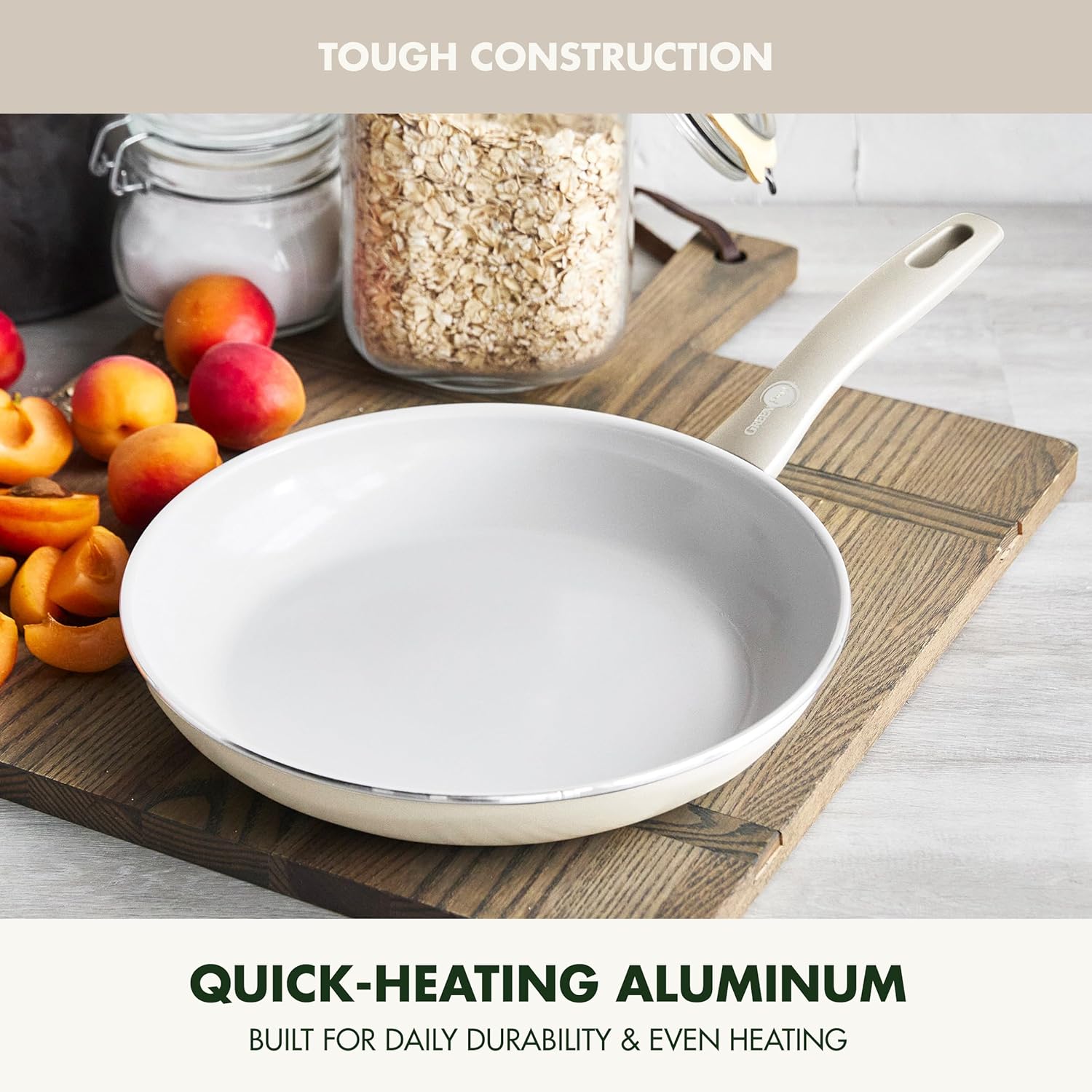 GreenPan Dover 10” Frying Pan Skillet, Non-Toxic PFAS-Free Ceramic Nonstick Coating, Sear Saute Fry Egg Omlete, Dishwasher & Oven Safe, Stay Cool Handle, Easy Pour Rims, Cream White