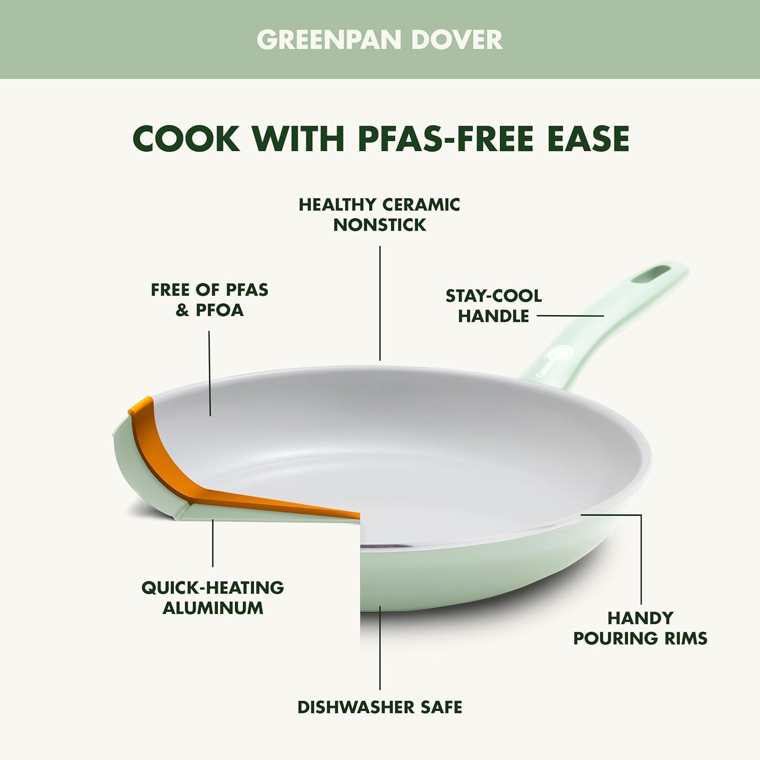 GreenPan Dover 10” Frying Pan Skillet, Non-Toxic PFAS-Free Ceramic Nonstick Coating, Sear Saute Fry Egg Omlete, Dishwasher & Oven Safe, Stay Cool Handle, Easy Pour Rims, Pastel Green