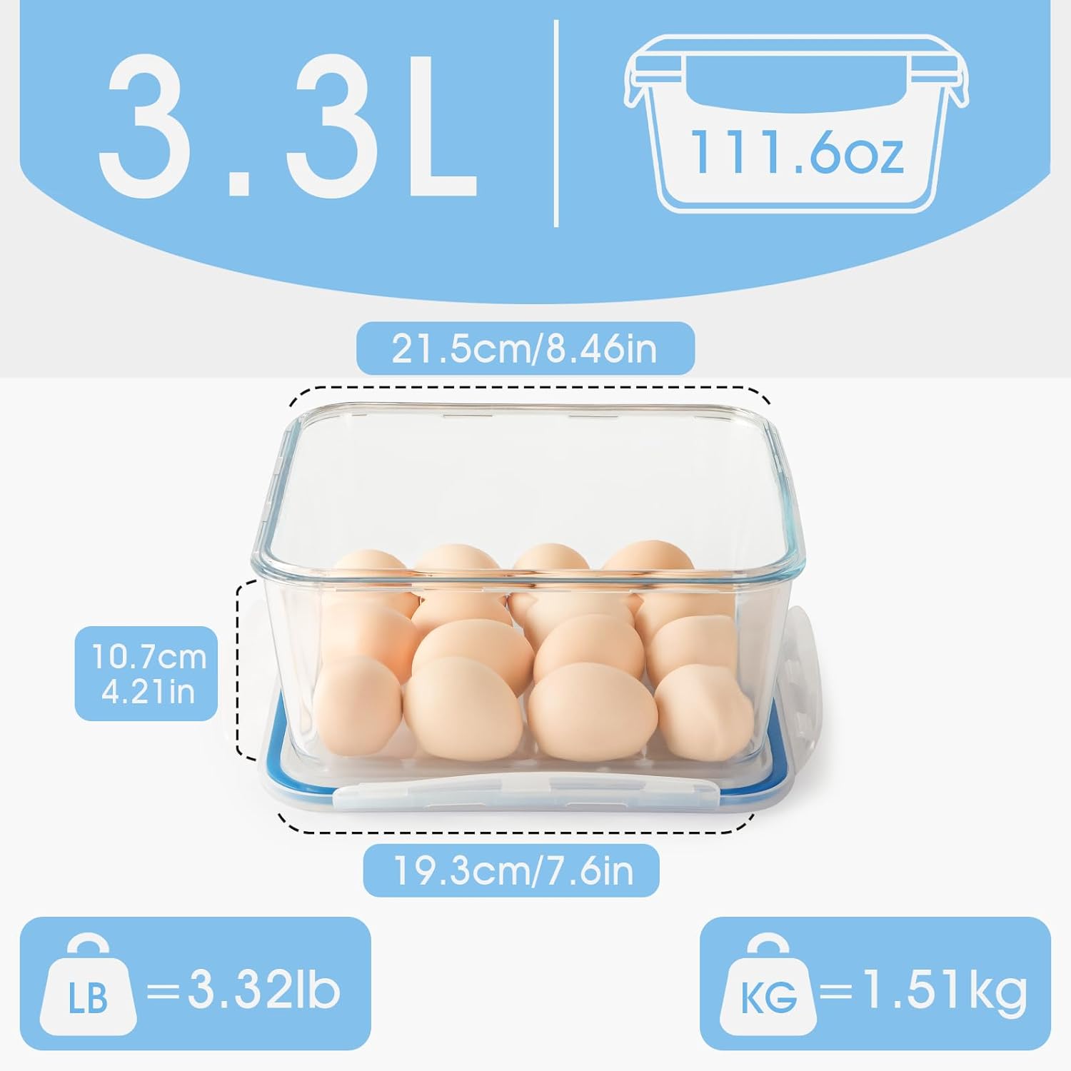 NUTRIUPS 3.3L Large Glass Food Storage Containers, Square Meal Prep Containers, Food Storage Containers