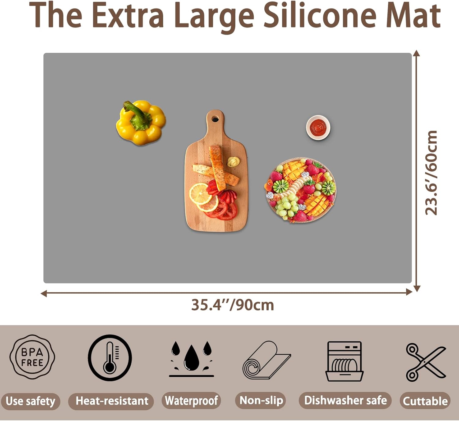 35.4''x23.6'' Extra Large Silicone Mat for Kitchen Counter, 1.4MM Thick Non-Slip Heat Resistant Countertop Protector, Waterproof Durable Kitchen Mat for Countertops, Islands (Black)