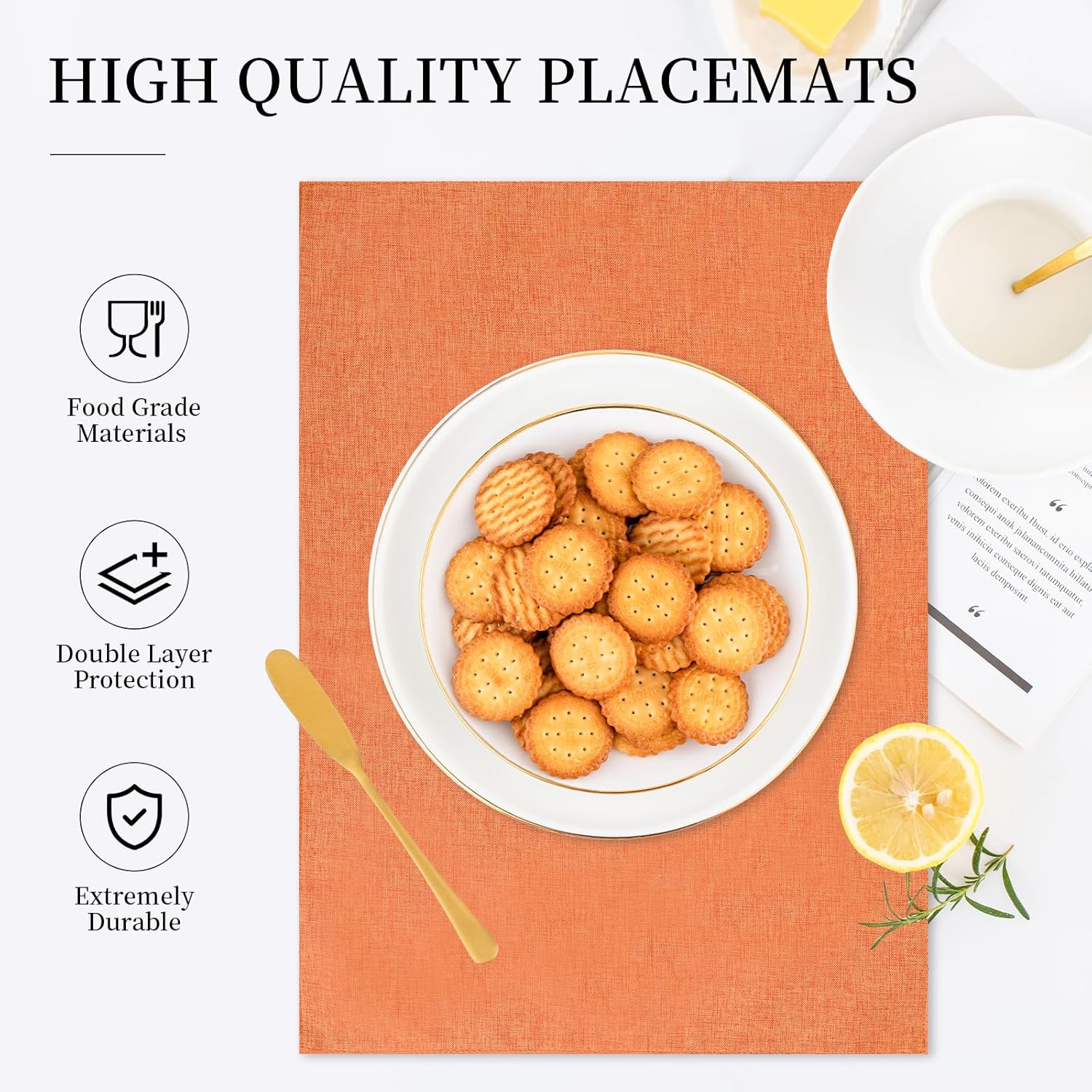 Placemats Set of 6 Linen Type Fabric Cloth Placemats, 19 x 13 Inch Double Layered Thick Wrinkle Free Heat Resistant Table Place, for Dining, Kitchen, Party (Orange, 48 * 33cm)