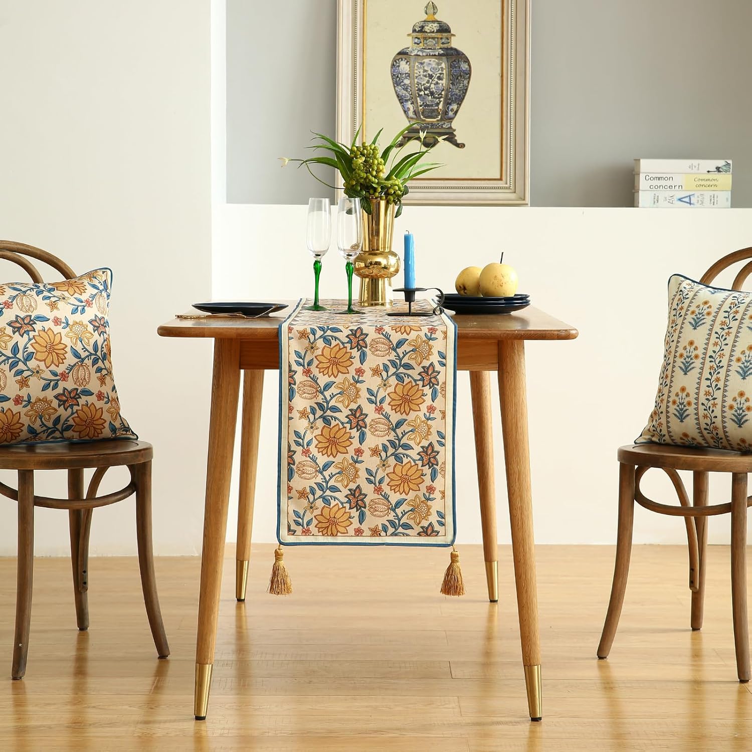 ISAENNE Designer Bohemian Elegant Linen Table Runner 71 Inches Long,Floral Pattern Duable Decor Table Runners for Dining Tables,Thanksgiving,Kitchen Tables,Christmas,12"*71"-Estevan B
