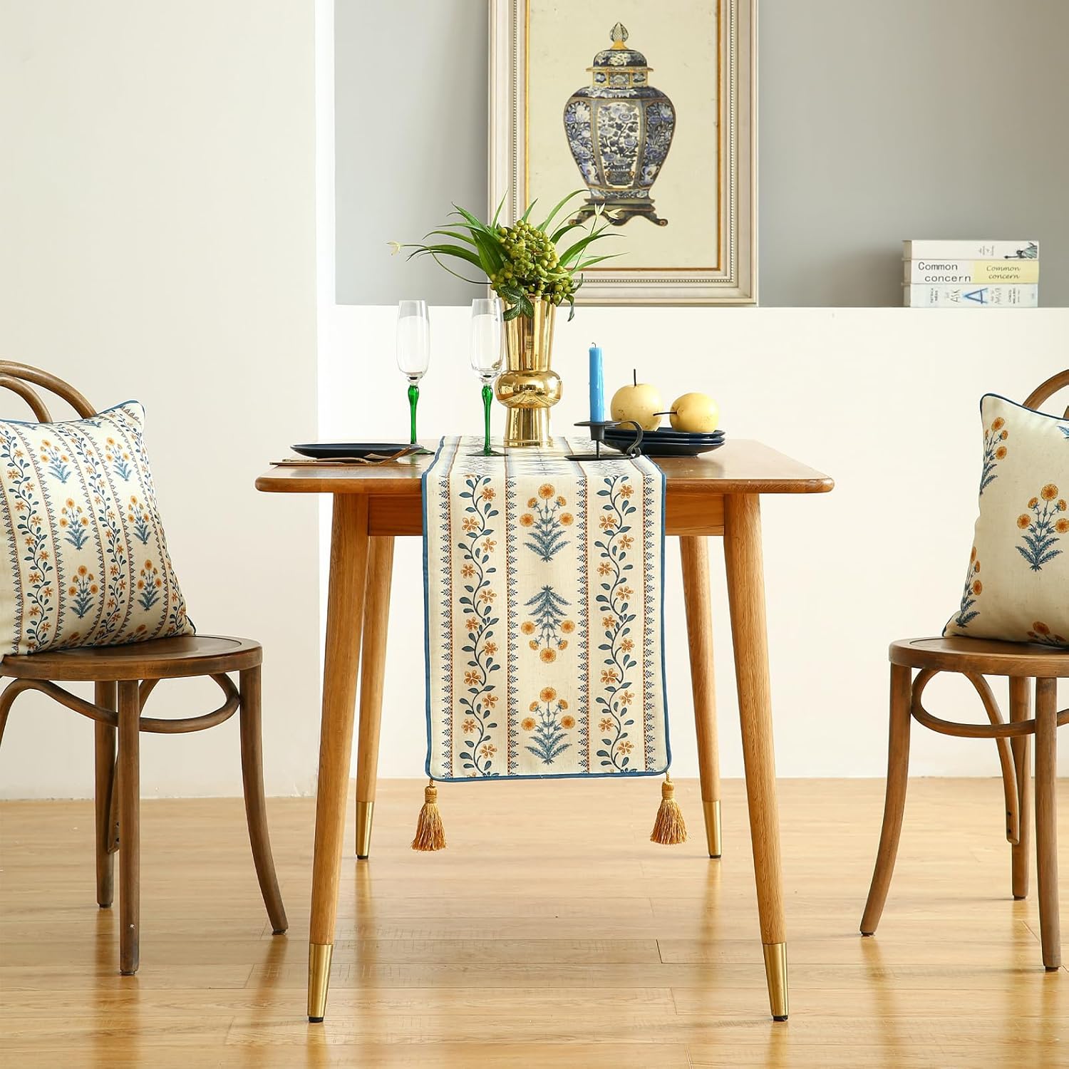 • Unique Design:Each table runner features patterns hand-drawn by our designers,showcasing exquisite details and rich textures for stunning visual appeal.The meticulous stitching ensures a smooth,wrinkle-resistant,and durable finish.With its fresh,rustic yet elegant style,it adds vibrancy and charm to your home decor