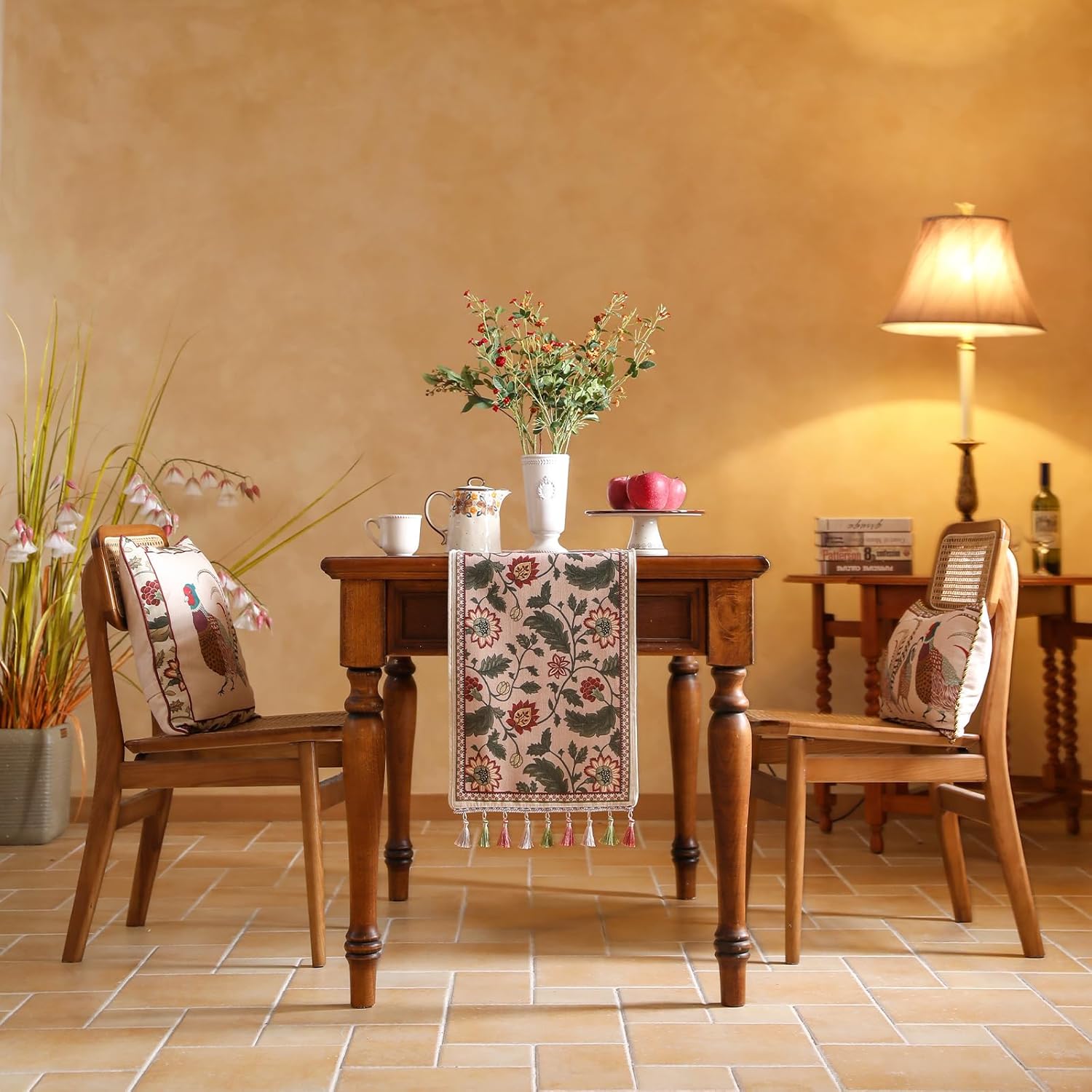 ISAENNE Designer Provence Elegant Linen Table Runner 87 Inches Long,Flower and Leaves Pattern Durable Table Runners for Dining Tables,Thanksgiving,Kitchen Tables,Christmas,12"*87"-Ratina